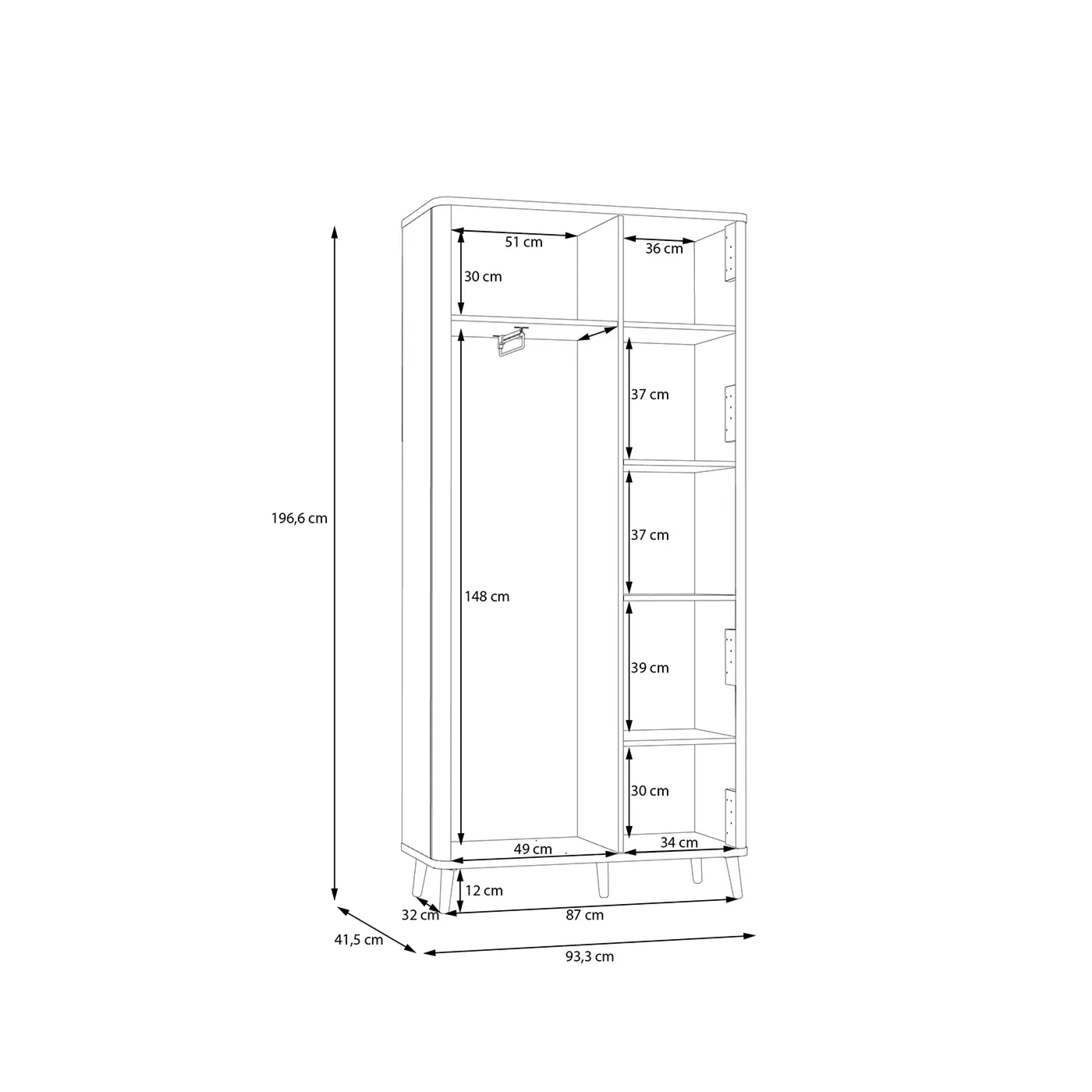 Armadio d'ingresso, 93x41x196h cm, Rovere Mauvella e Nero
