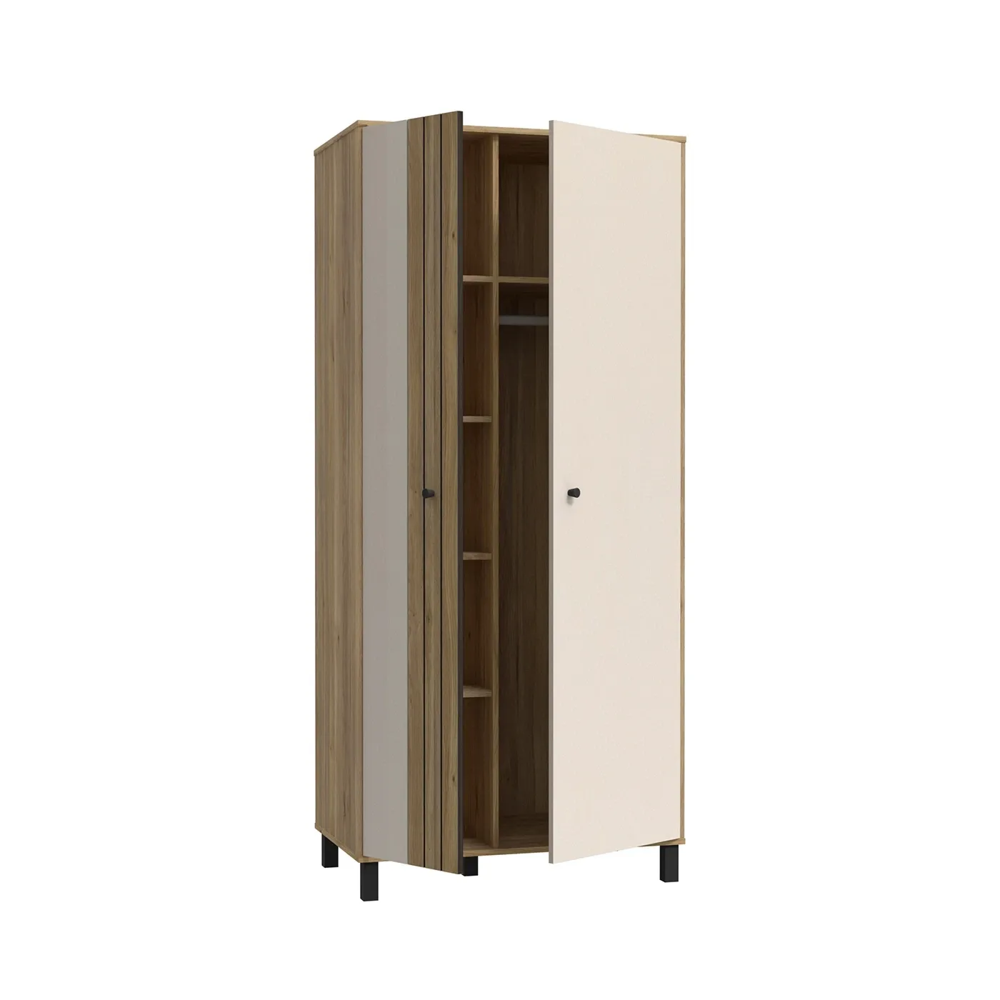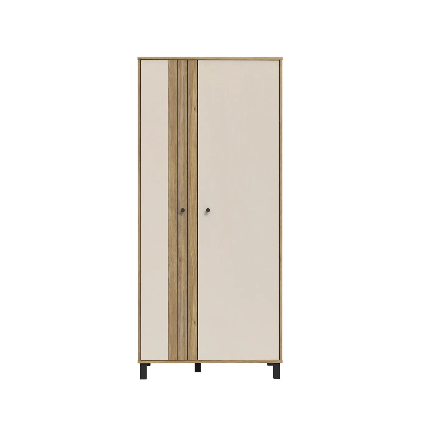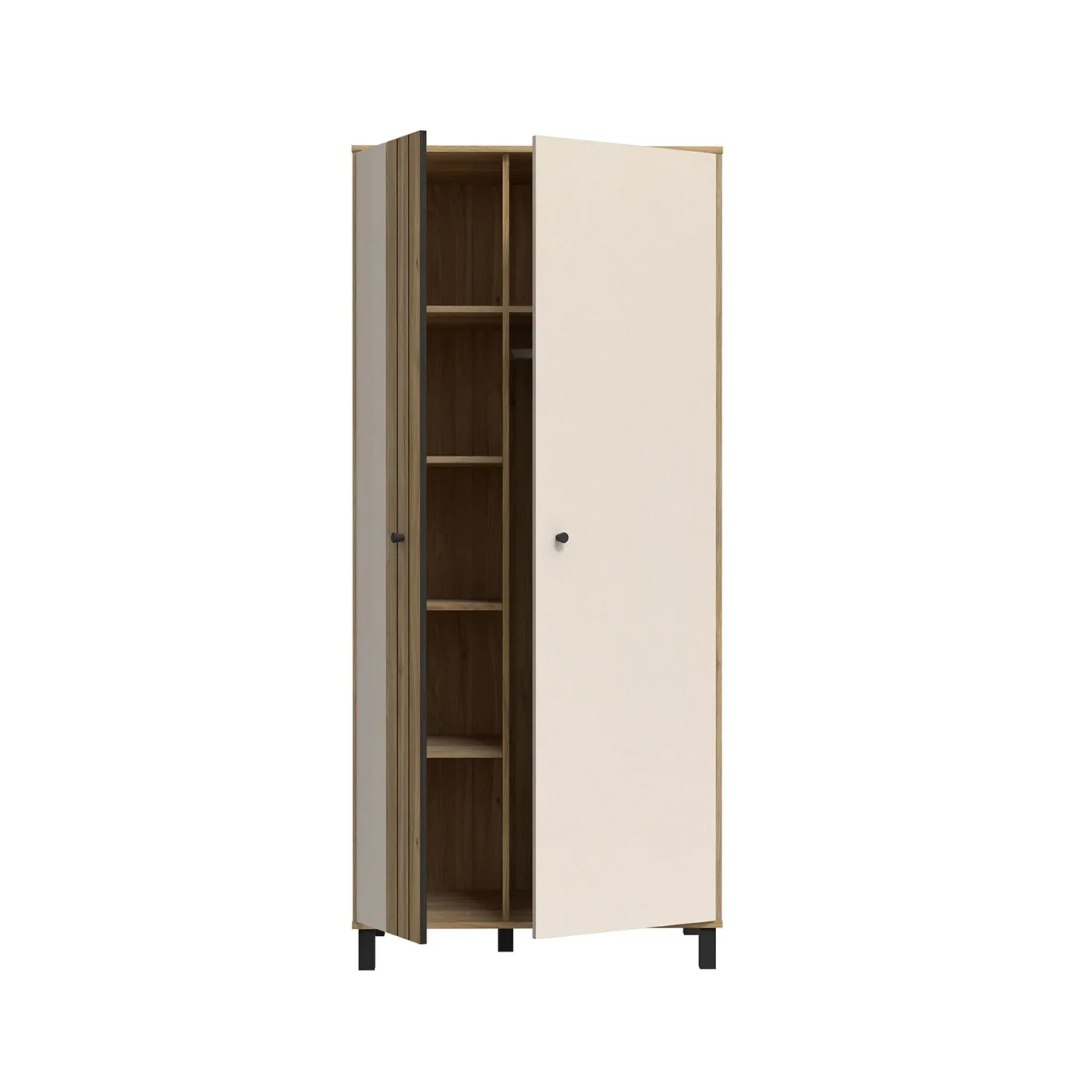 Design versatile: L'armadio ha un design che si adatta a diversi stili d'arredo, dal più classico al più moderno. La combinazione della tinta legno e sabbia lo rende un pezzo neutro che si può facilmente abbinare ad altri mobili.