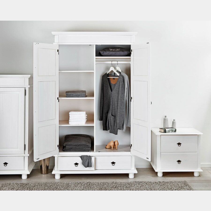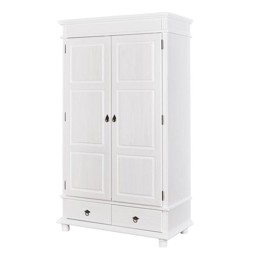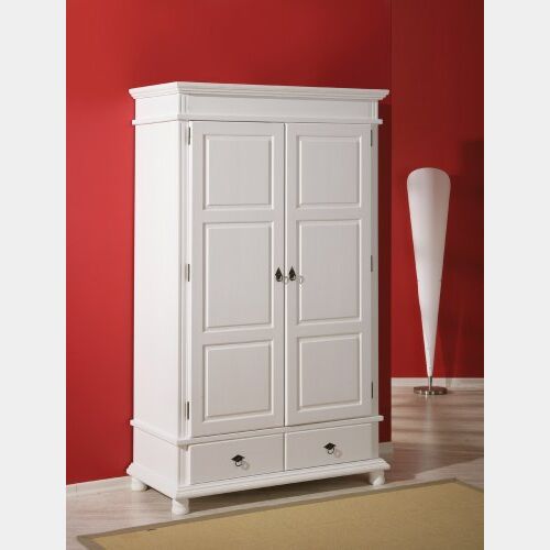 Armadio due ante +due cassetti pino massello verniciato ad acqua bianco