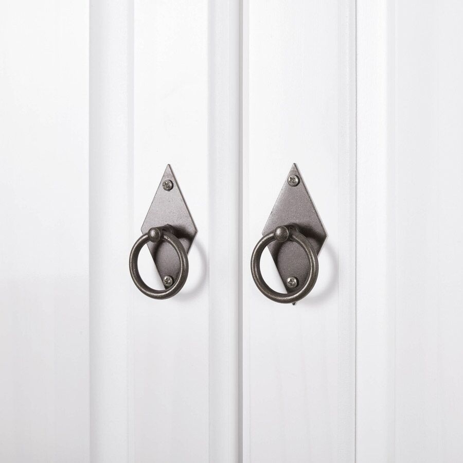 Questo armadio cela una distesa di spazio dietro le sue porte ad ampia apertura.