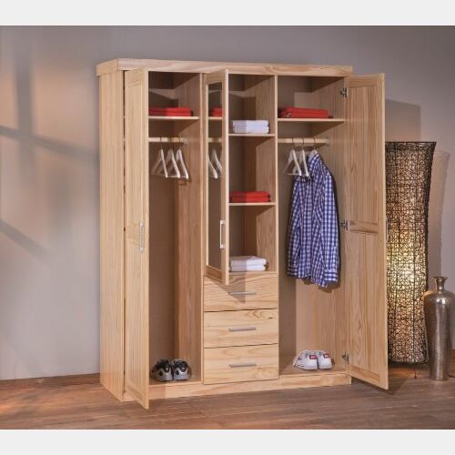 L'aspetto eccezionale di questo armadio con due porte, un anta centrale a specchio e tre cassetti offre molto spazio di archiviazione. Questo armadio cela una distesa di spazio dietro le sue porte ad ampia apertura. Molto elegante anche l'anta a specchio