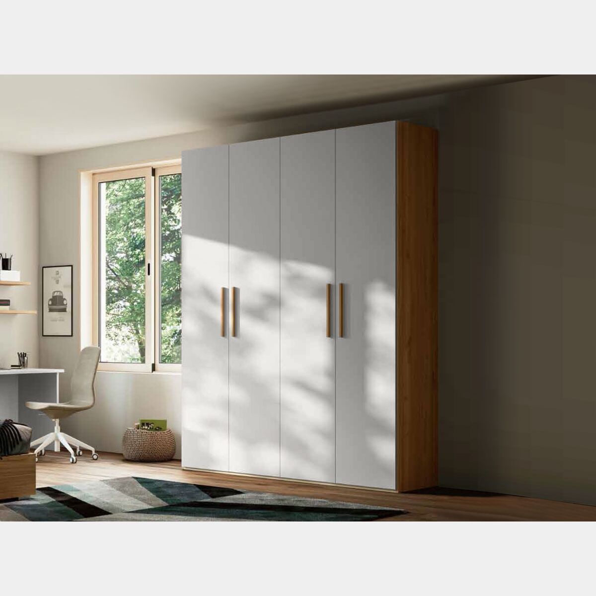 Armadio H.234 a 4 ante battenti, finitura Bianco e Noce biondo