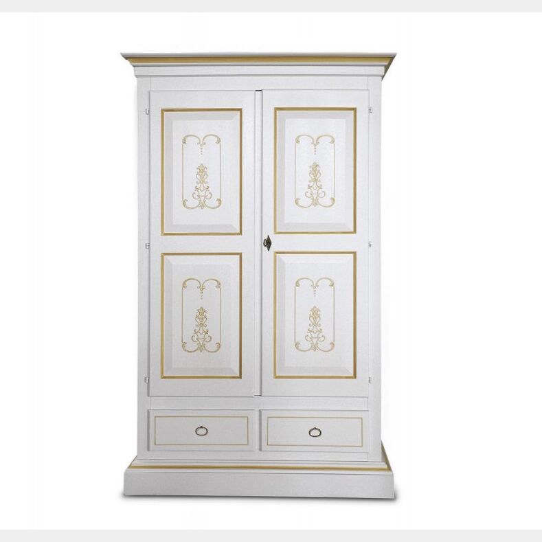 Armadio a cappello dritto, in stile Classico, realizzato in legno, laccato bianco con filetti ocra, vanta un design spiccatamente tradizionale perfetto per gli amanti dell'arredo elegante e intramontabile.