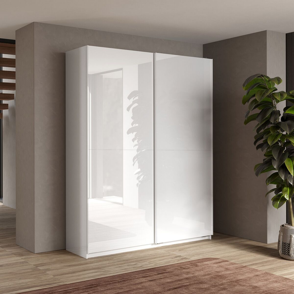 Armadio moderno in Bianco lucido con due ante scorrevoli, adatto a camerette, camere matrimoniali o ingressi. Scopri altri armadi scorrevoli.