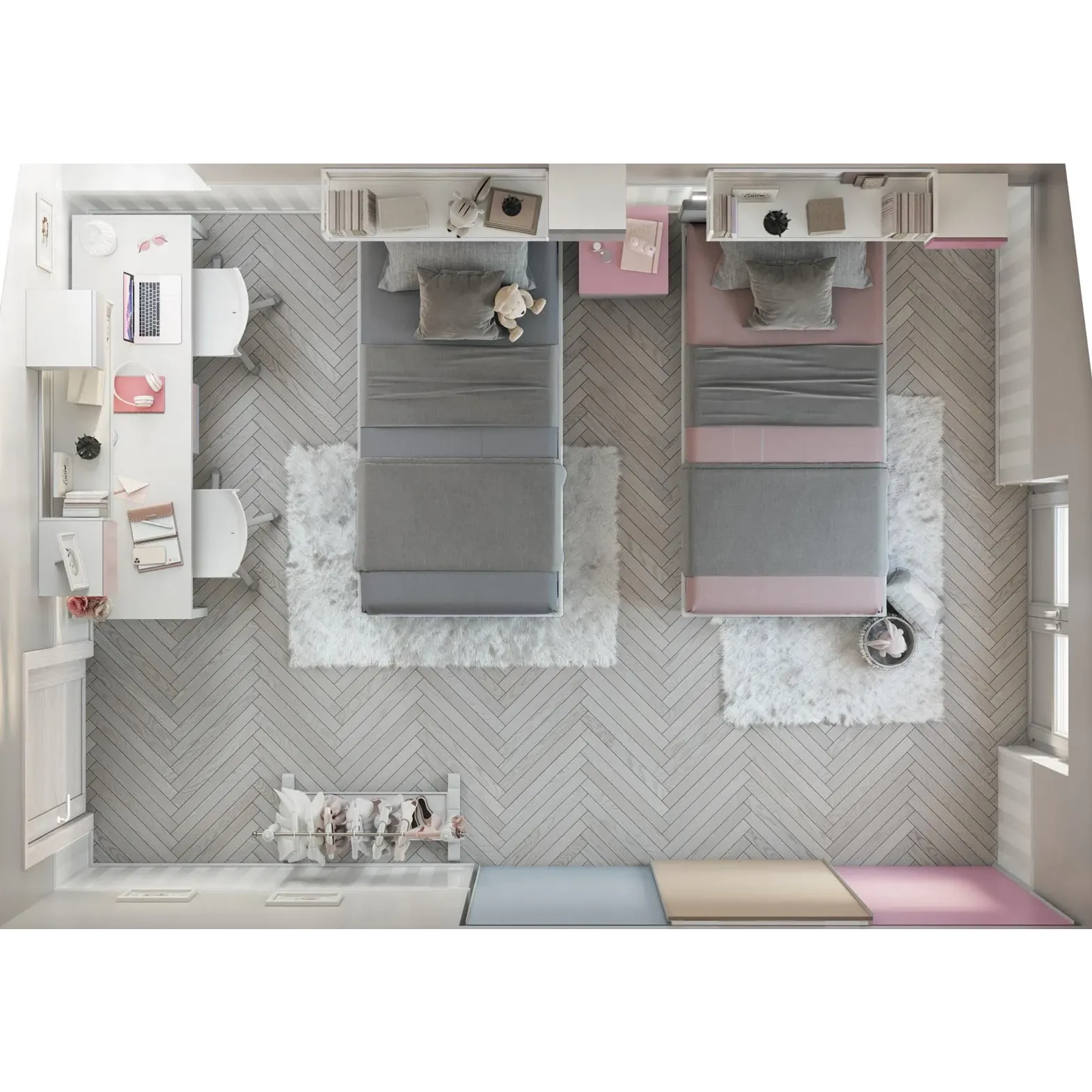 L'armadio presenta 3 ante scorrevoli in delicate tinte pastello che creano armonia e calore; è possibile personalizzare le finiture per adattare l'armadio alla propria cameretta, optando per colori in linea con i propri gusti.