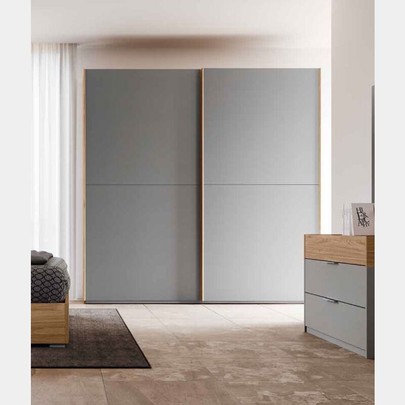 Armadio moderno 2 ante scorrevoli, finitura Grigio Argento e Noce Biondo