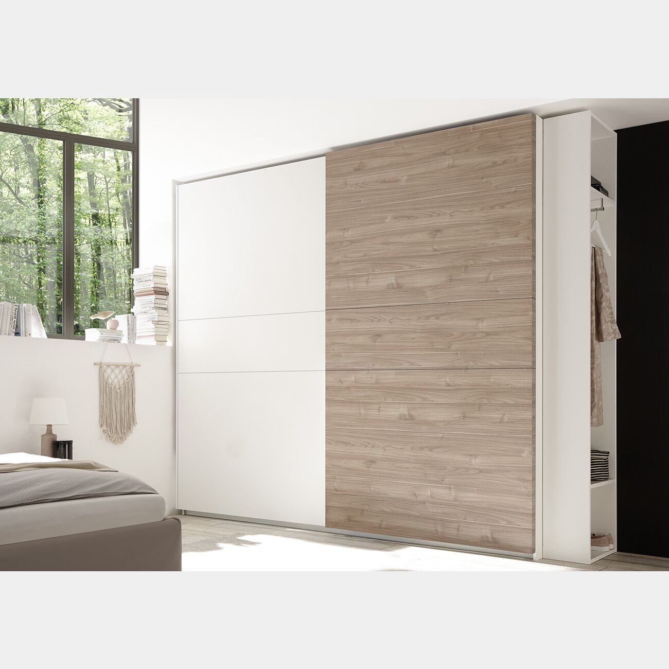 Armadio moderno a 2 ante scorrevoli scontato in finitura Bianco opaco e Noce Stelvio