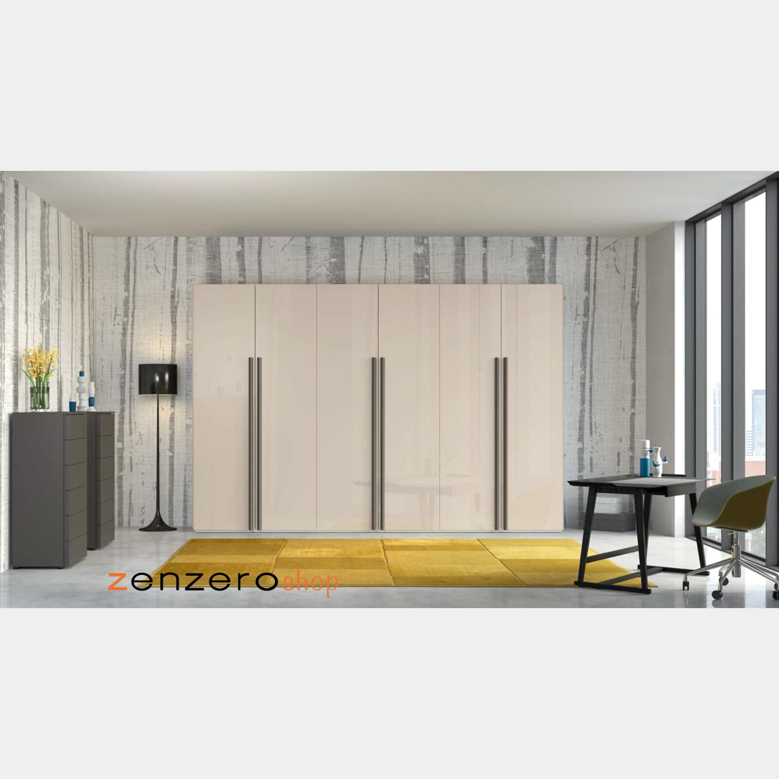 Armadio moderno a 6 ante battenti, finitura orzo nobiliato