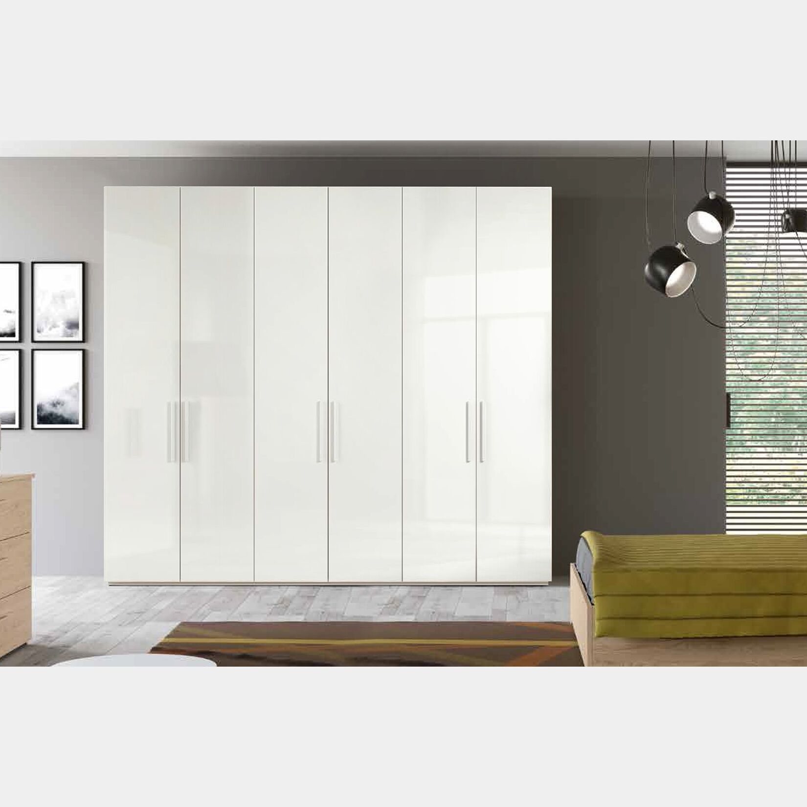 Armadio moderno finitura Bianco nobilitato, 6 ante battenti