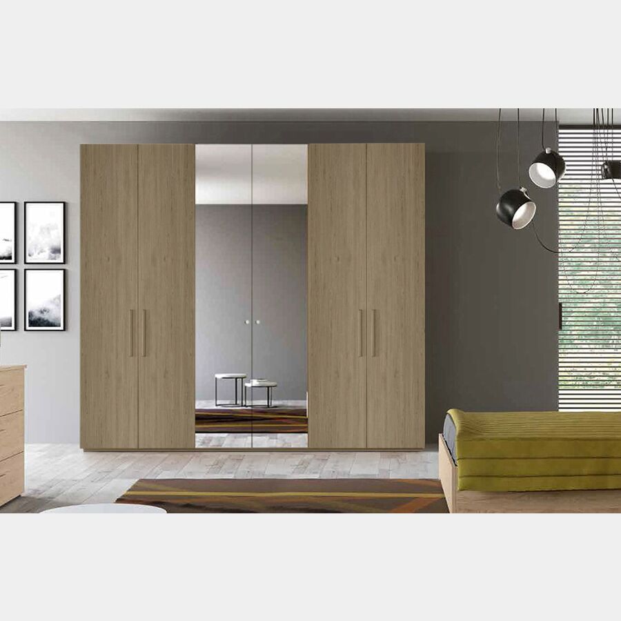 Armadio 6 ante battenti 2 delle quali a specchioPratico Armadio 6 ante battenti con struttura e frontali rovere crudo, adatto a camere moderne o di design.