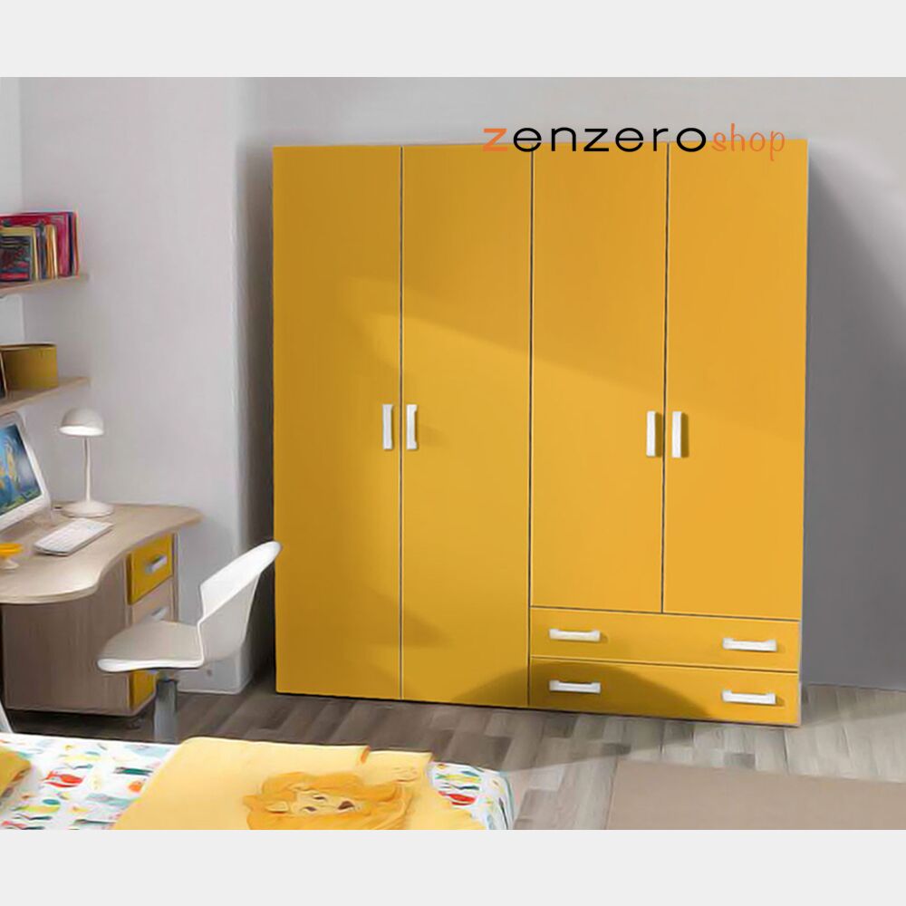 Armadio moderno Giallo e Olmo con 4 ante battenti 2 cassetti