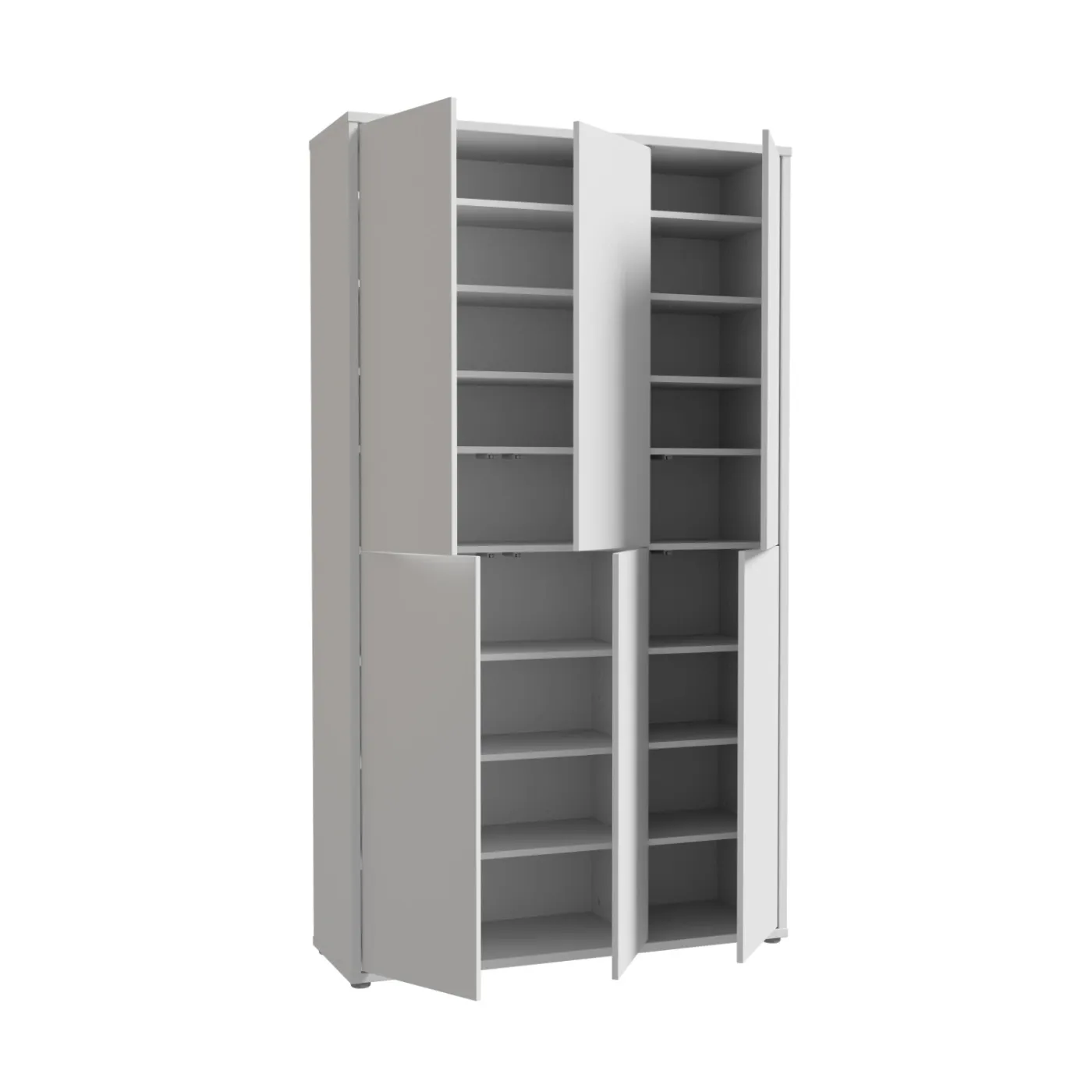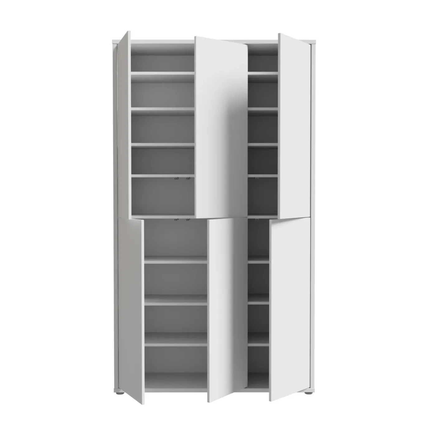 Questo armadietto multiuso non si distingue solamente per le ragguardevoli dimensioni, ma anche per il confort che è capace di offrire grazie ai suoi 8 ripiani contenitori, separati nel mezzo e coperti da ben 6 ante.