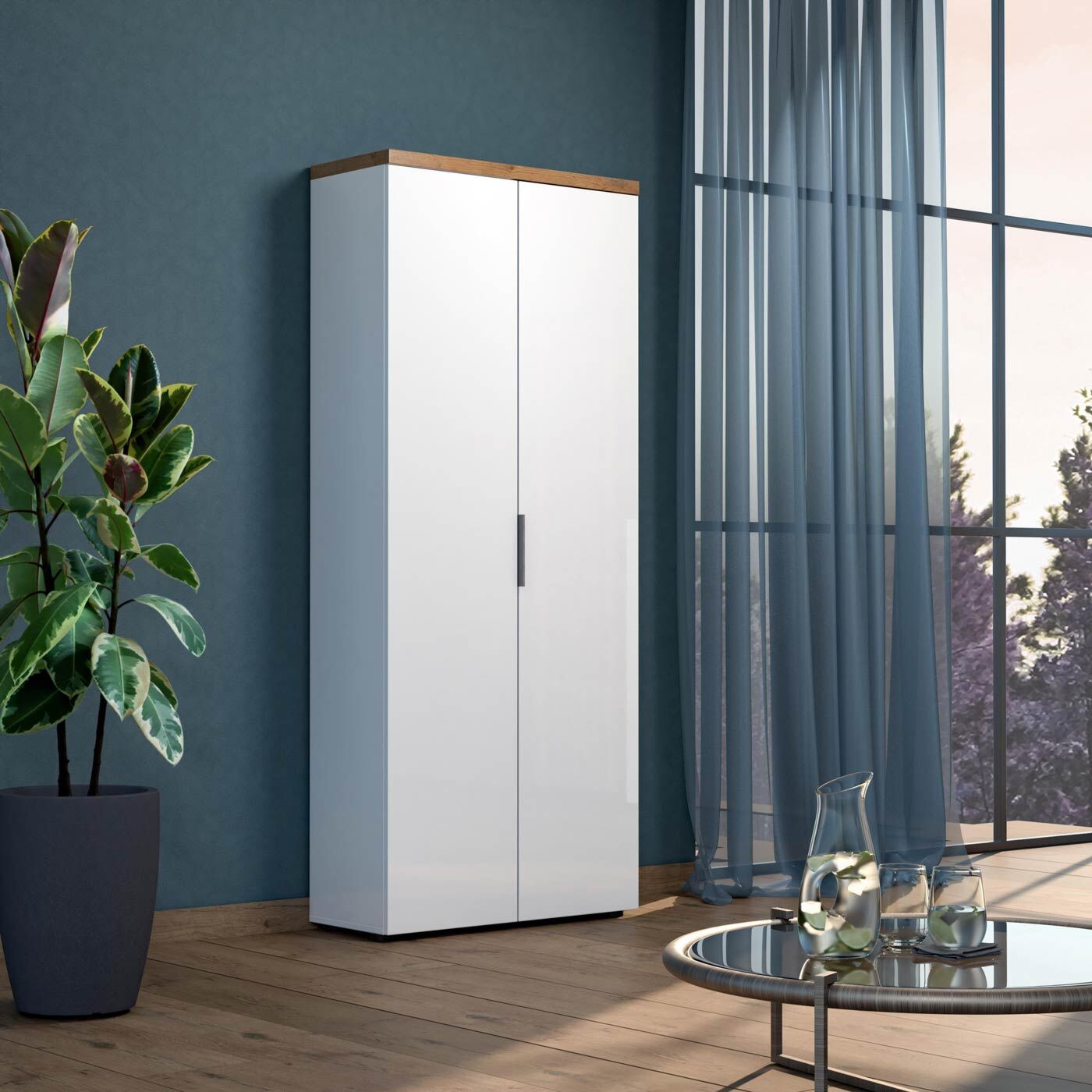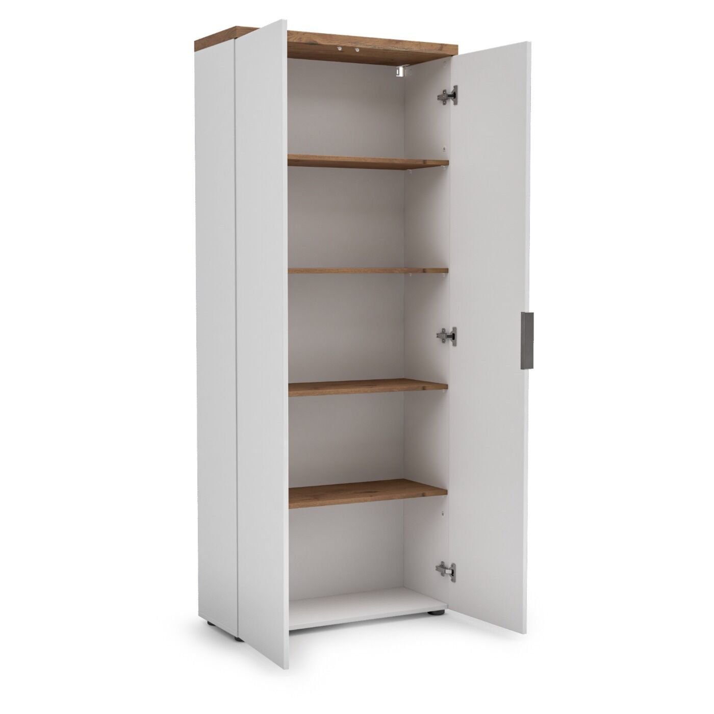 Armadio multiuso 2 ante, finitura Bianco lucido e Rovere chiaro