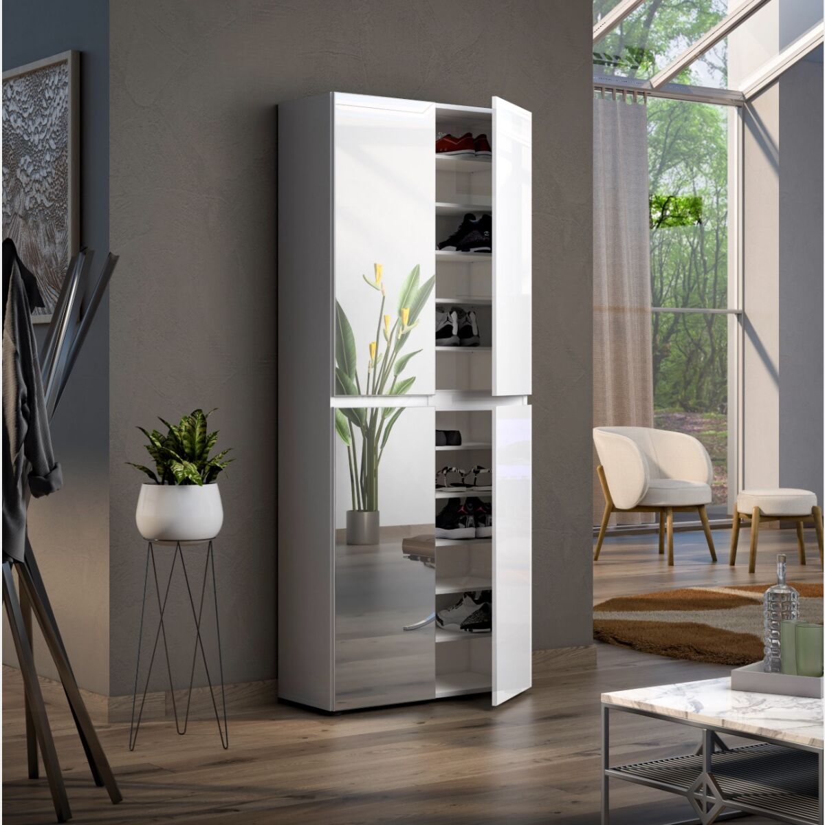 Armadio con 4 ante di cui 2 a specchio, dotato internamente di 11 ripiani, risulta un valido alleato per mantenere la stanza ordinata, può essere posizionata in un ingresso, una camera da letto, in lavanderia, in garage oppure in bagno.