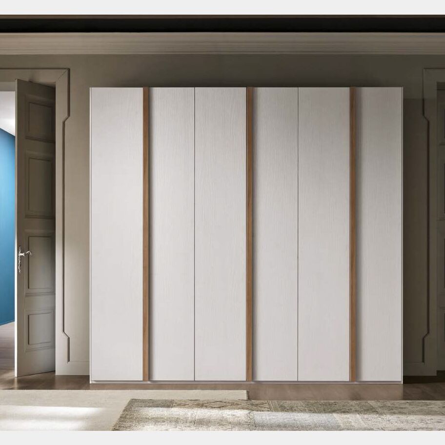 Armadio Noce bianco con maniglie Noce naturale, 6 ante battenti