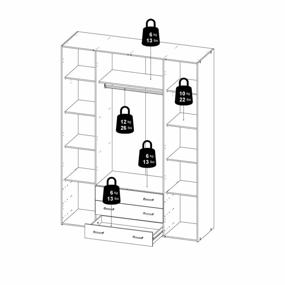 Come si può notare dalle foto è molto capiente in quanto composto da otto ripiani, da quattro ante, da tre cassetti e da un tubo appendiabiti che torna utile in qualsiasi momento. Le maniglie garantiscono un facile accesso. Questo nuovo arrivo è un'ottima offerta in quanto è un mobile di buona qualità ad un prezzo conveniente.