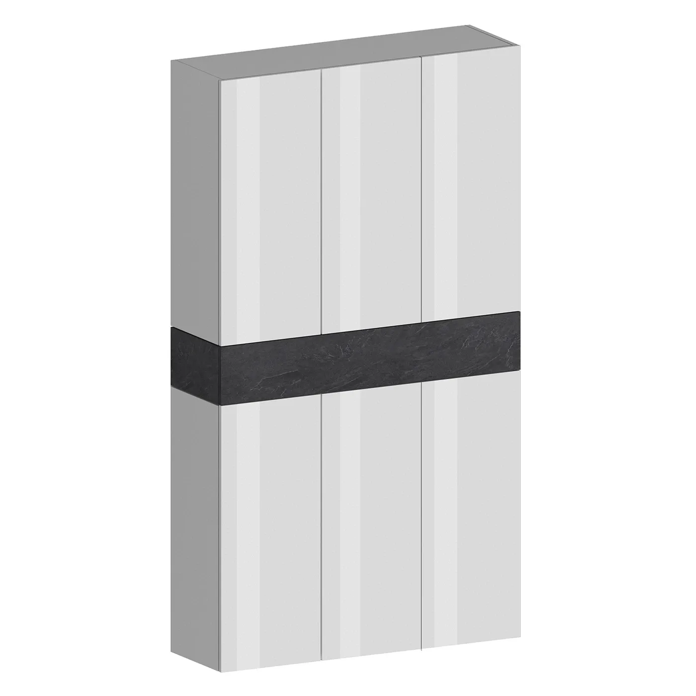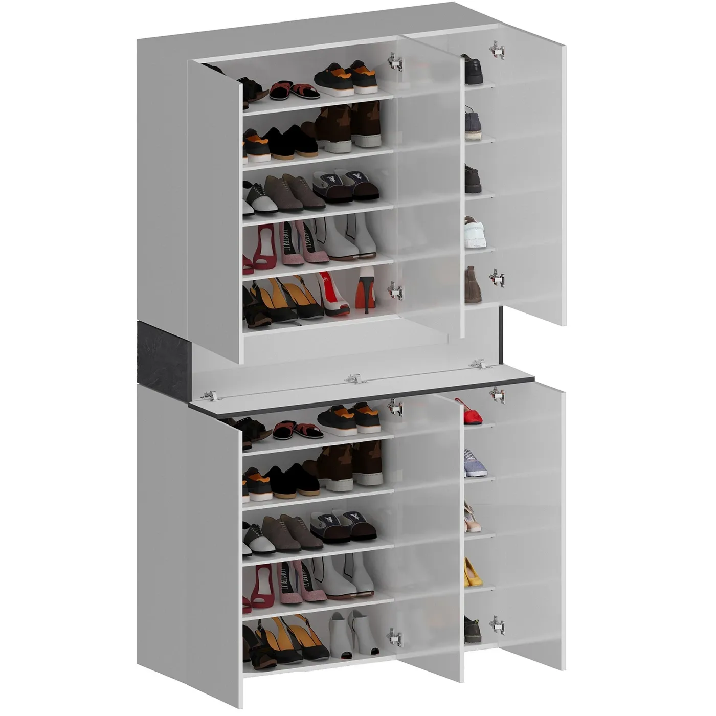 Armadio scarpiera a 6 ante con 1 ribalta, Bianco laccato lucido e Ardesia