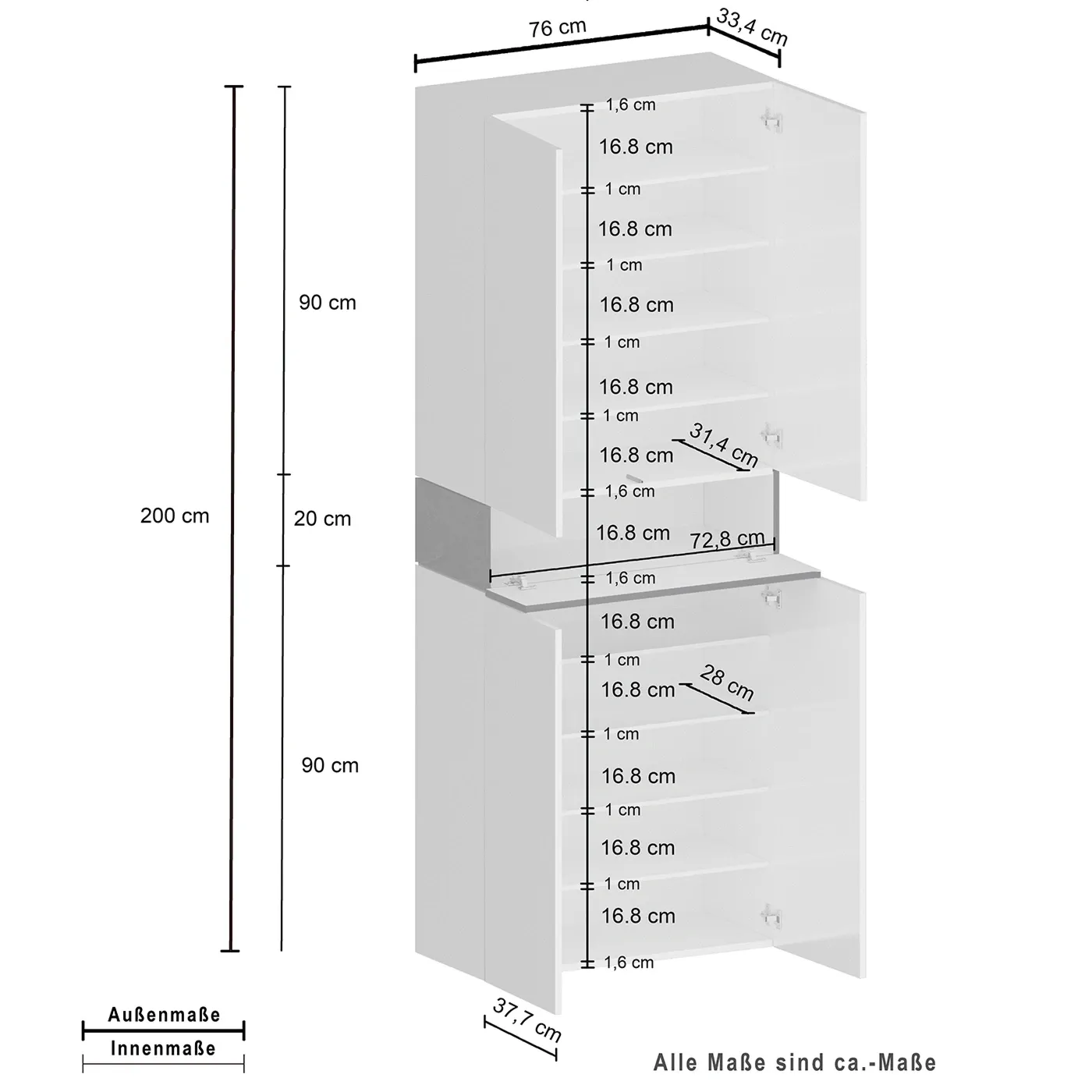 Dimensioni: 76 x 35 x 200 cm (LxPxA)