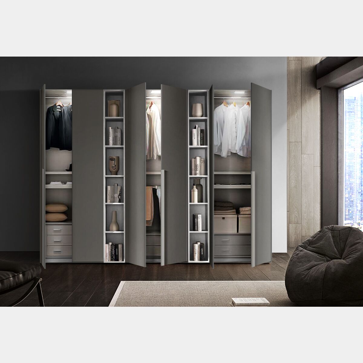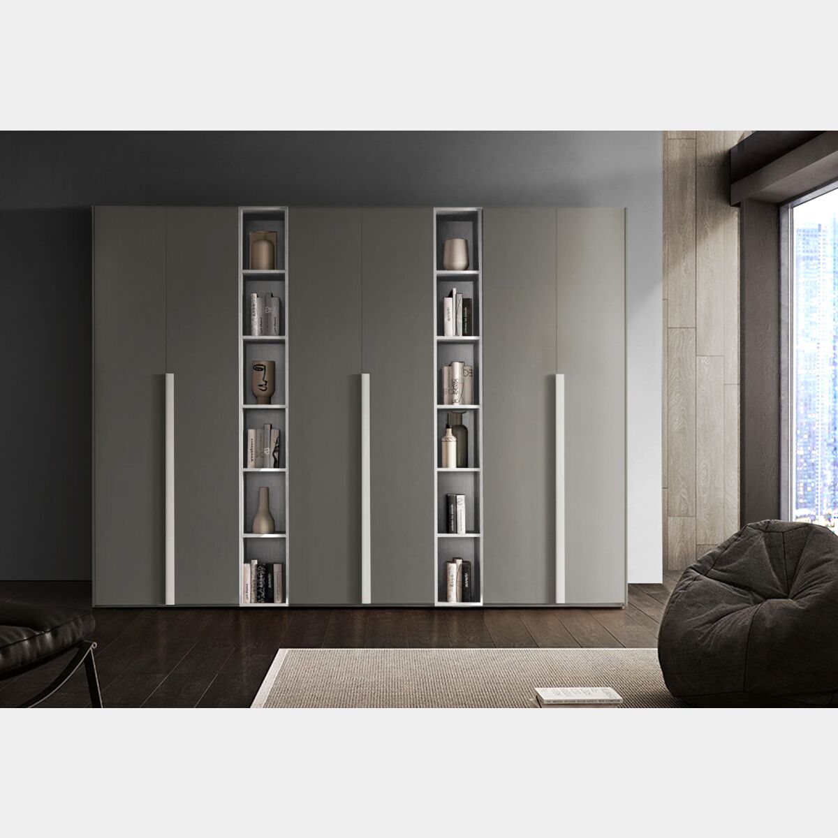 Armadio scontato 6 ante battenti con libreria, finitura Grigio londra