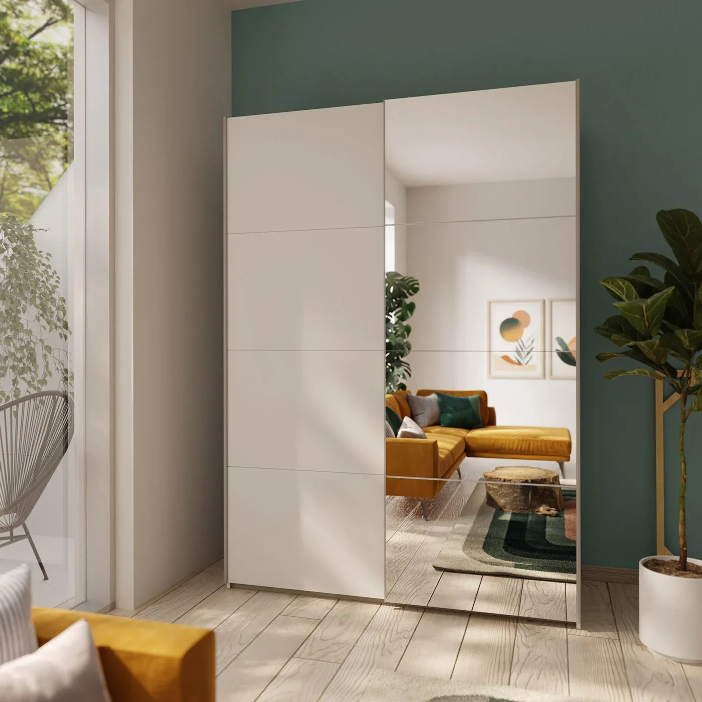 L'armadio a due ante scorrevoli diventa il complemento d'arredo perfetto a diverse stanze della casa, offrendo stile e capienza.