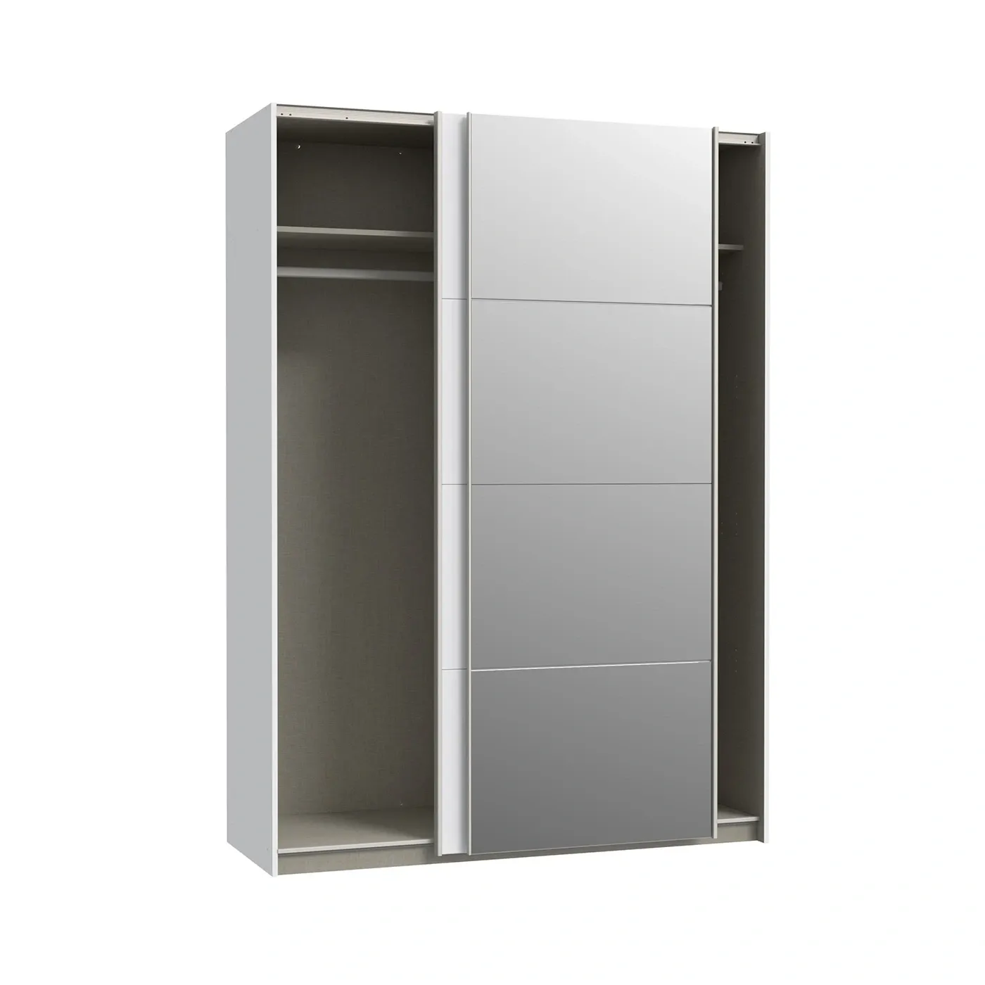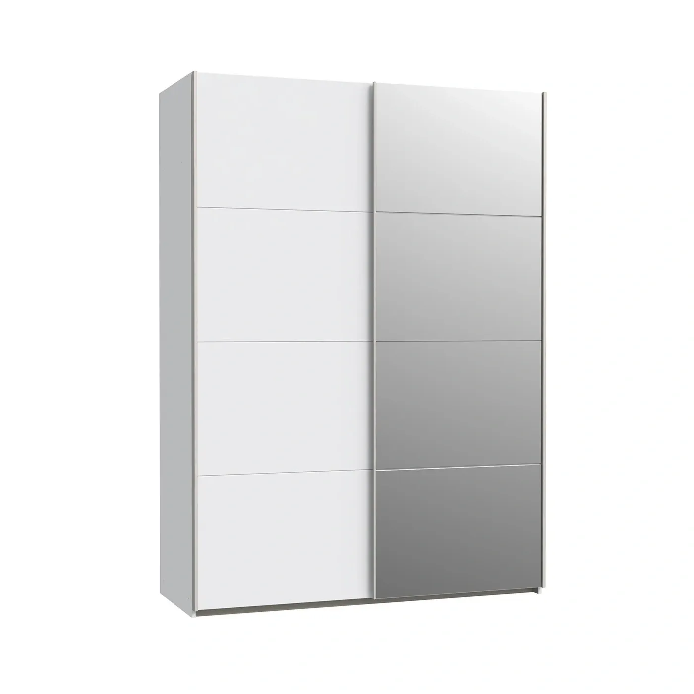 Armadio scorrevole 2 ante con specchio, 151x62x211 h cm, Bianco