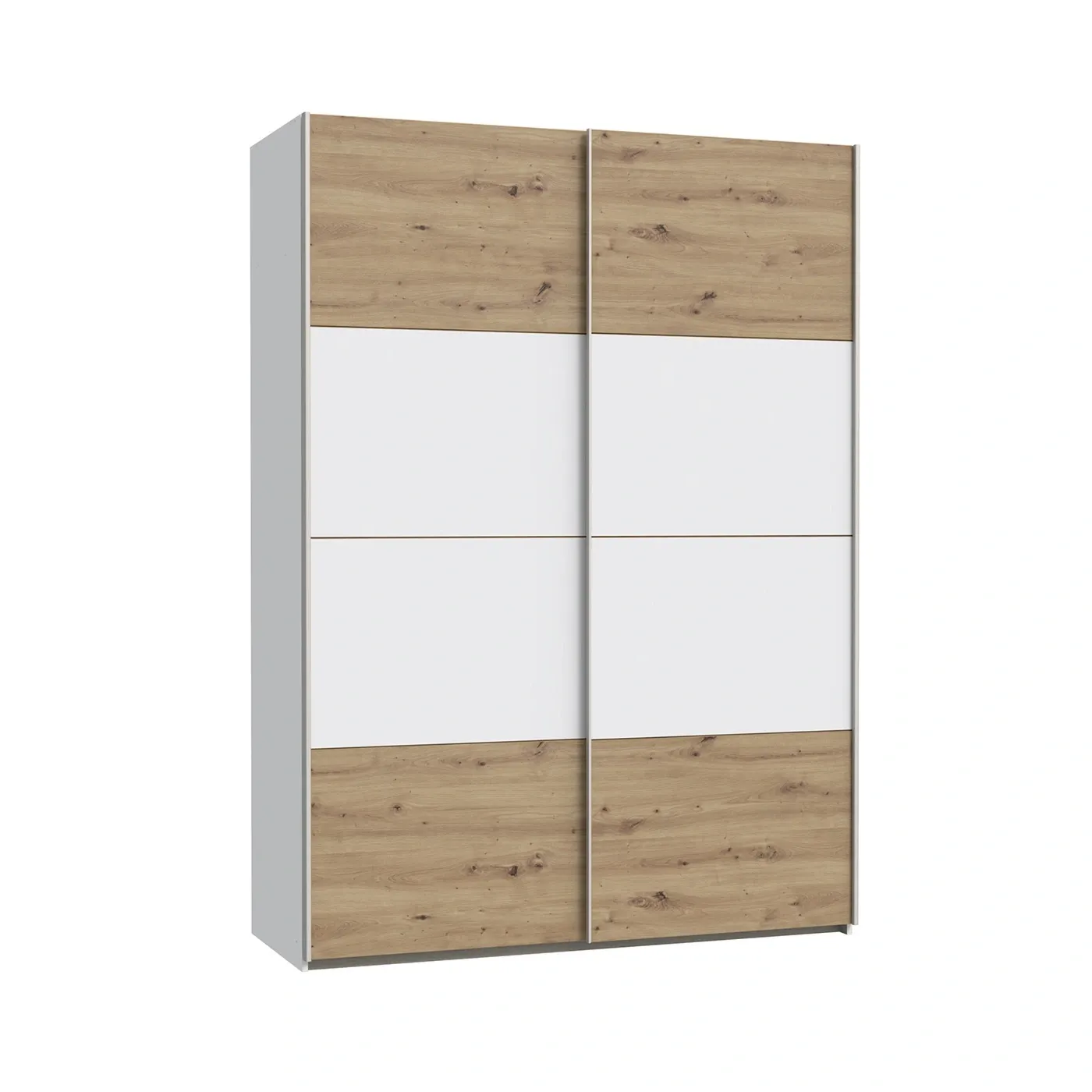 Armadio scorrevole 2 ante, 151x62x211 h cm, Rovere e Bianco