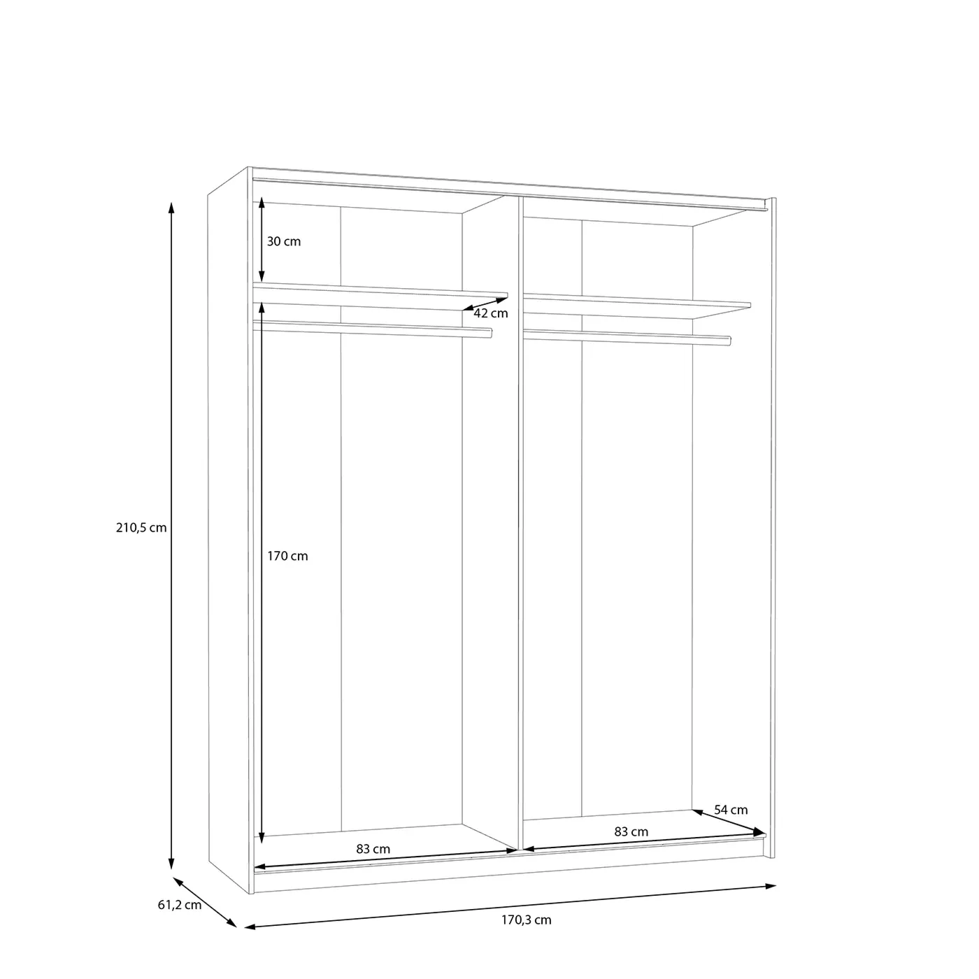 Armadio scorrevole 2 ante, 171x62x211 h cm, Bianco