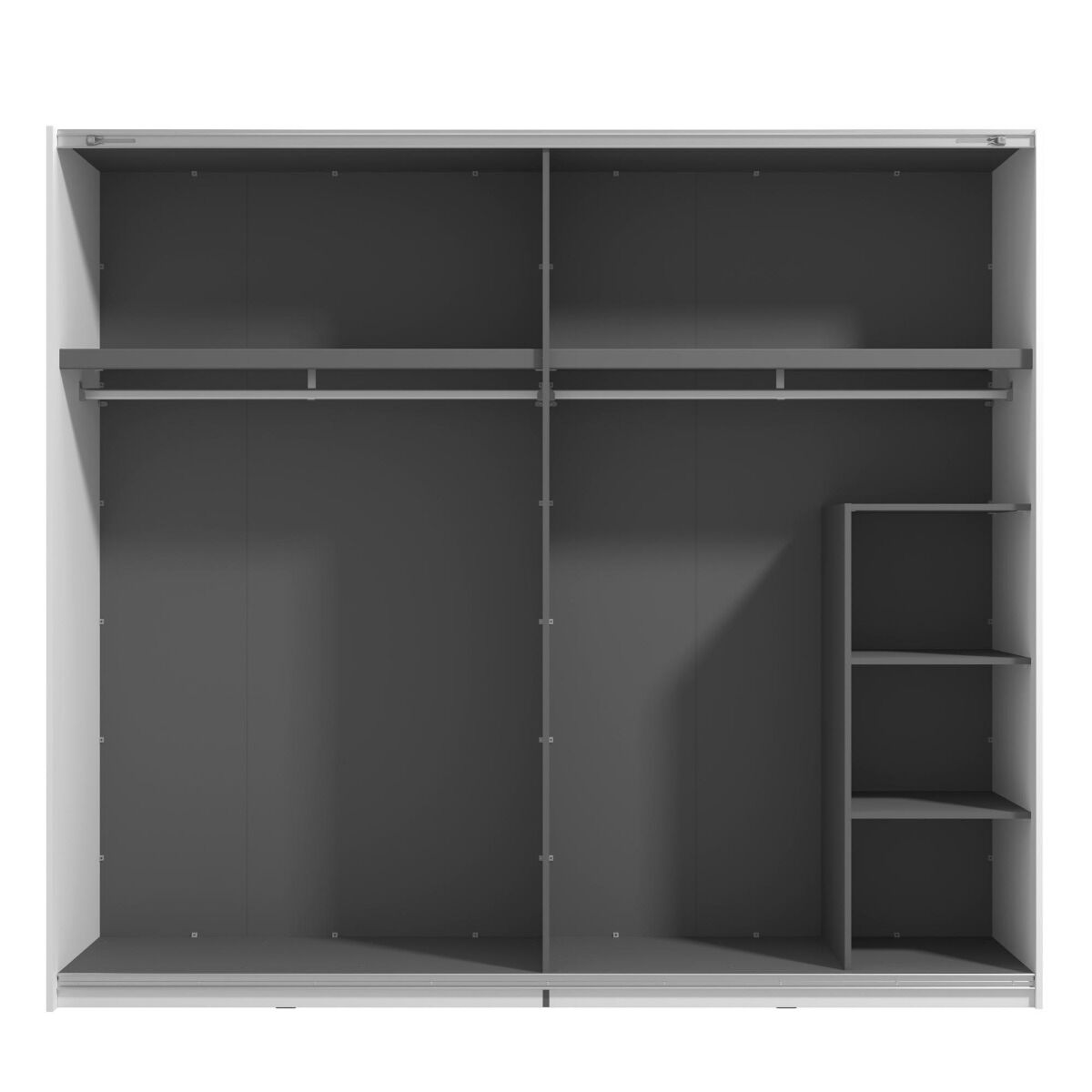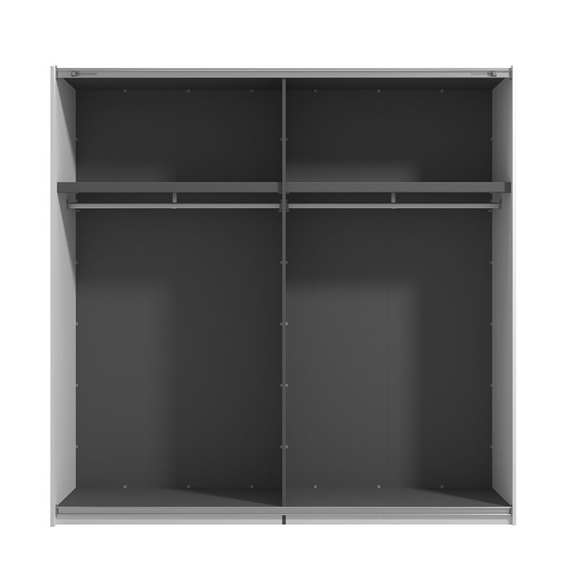 Di base vengono forniti due ripiani interni e due tubi appendiabiti, è possibile personalizzare l'armadio richiedendo ulteriori ripiani, la scaffalatura interna a 3 ripiani e il passepartout con luci led.