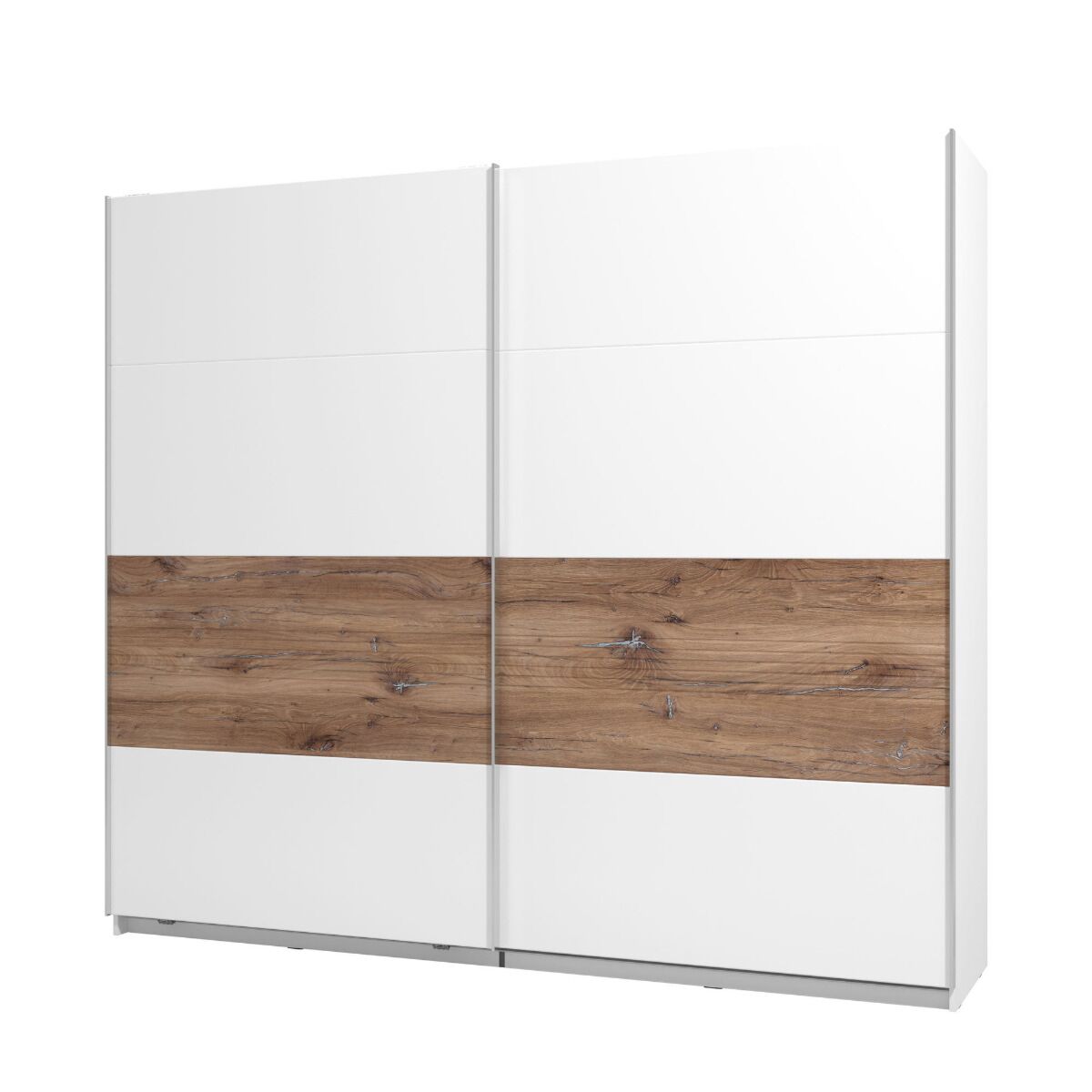Armadio scorrevole bianco con fascia rovere, 2 ante scorrevoli