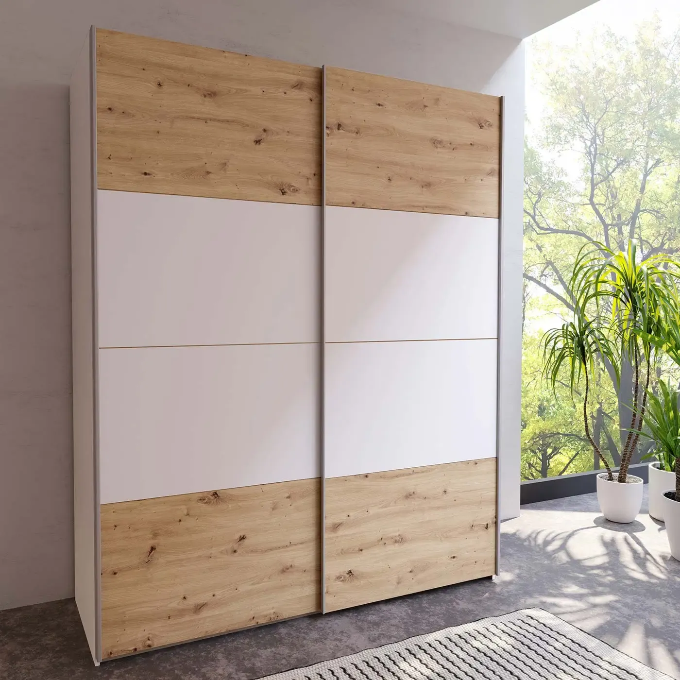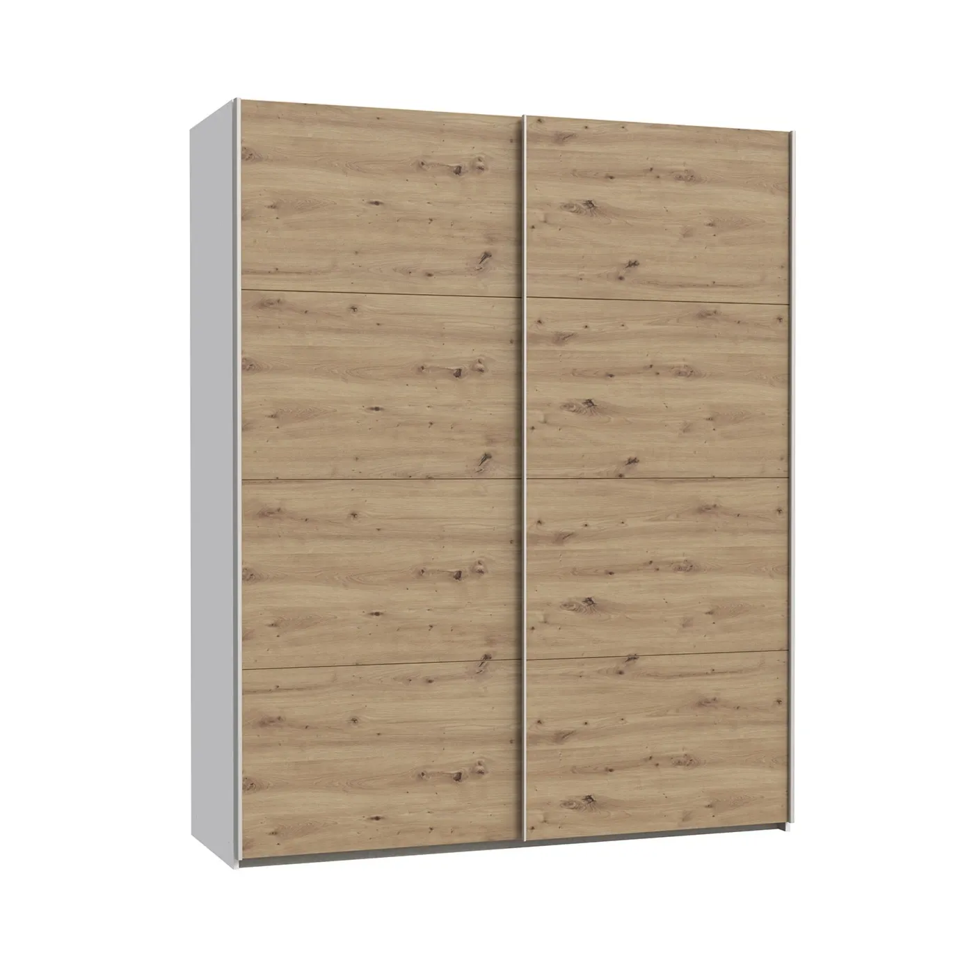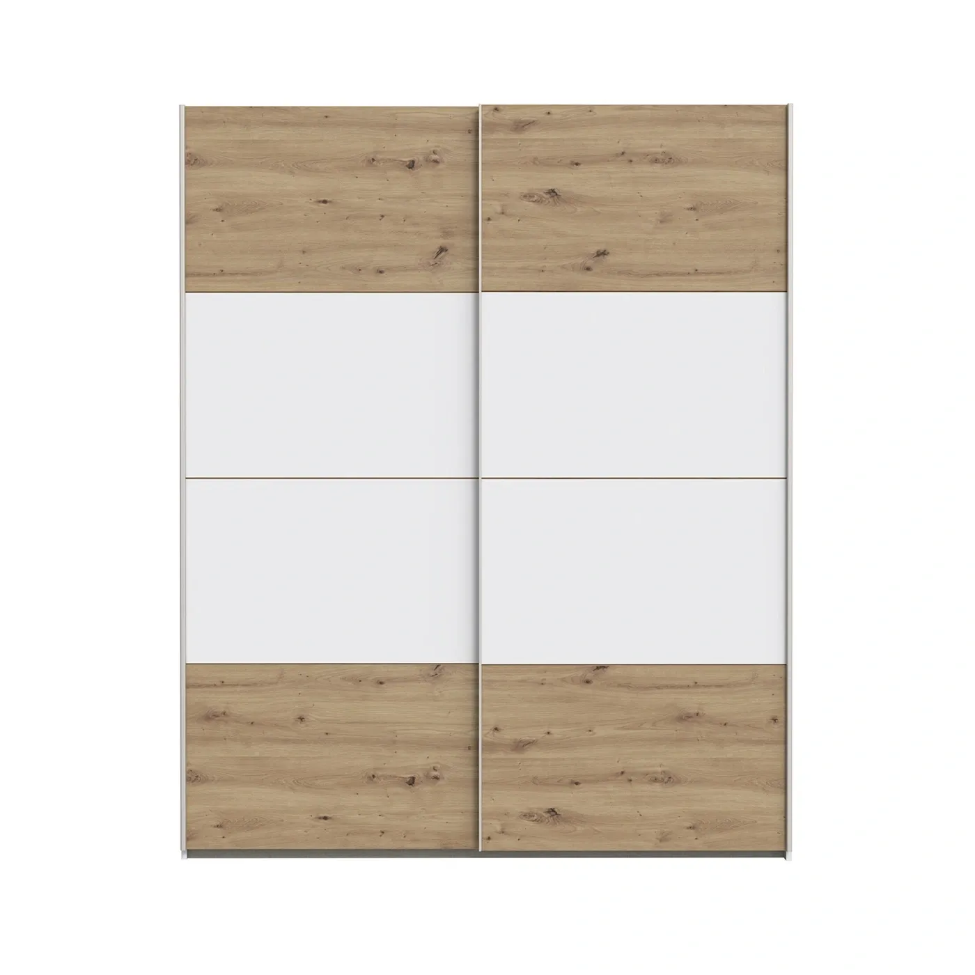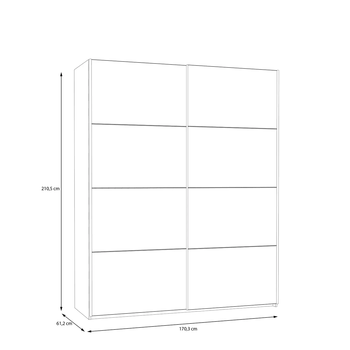 Armadio scorrevole 2 ante, 171x62x211 h cm, Bianco e Rovere