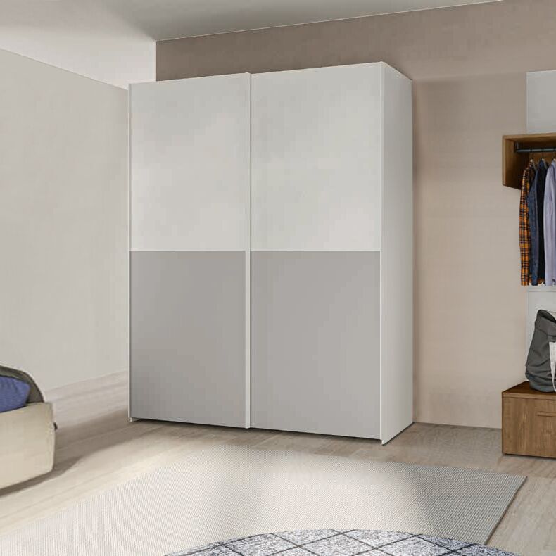 Armadio scorrevole bicolor, Cemento artico e Grigio dorian, 2 ante