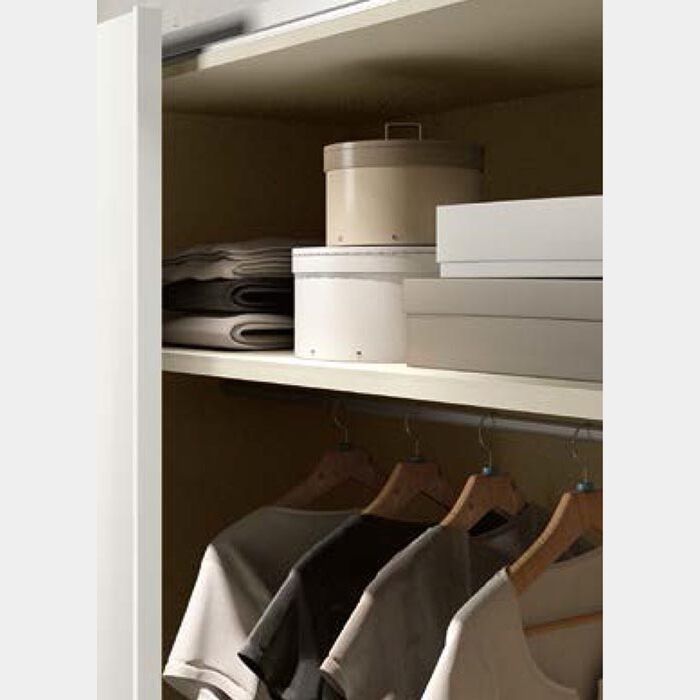 L'allestimento di base dell'armadio prevede 2 tubi appendiabiti e un ripiano per anta.