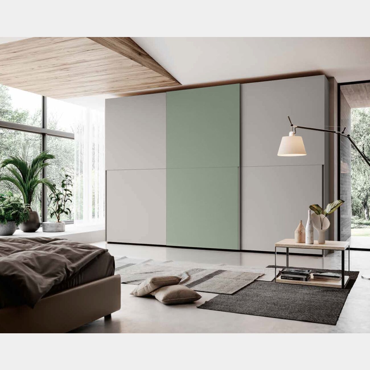 Armadio scorrevole bicolore, Agave e Grigio Seta