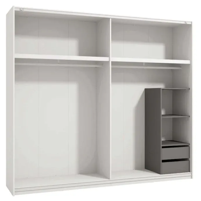 Progettato per tutte le camere da letto, anche quelle di dimensioni limitate, l'armadio assicura uno stile elegante e ricarcato, offrendo al contempo praticitià e comodità.