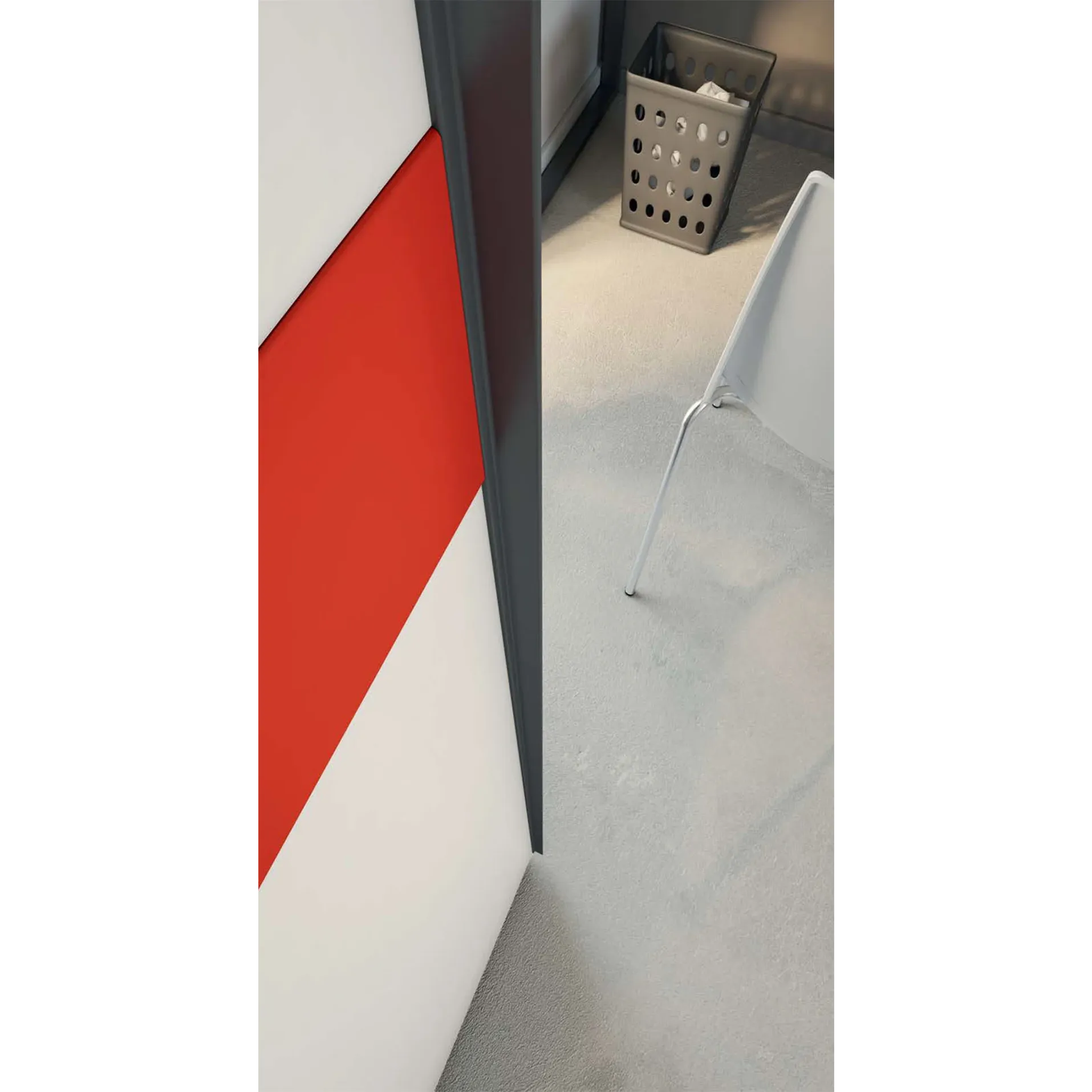 Armadio scorrevole con fascia rossa, finitura Bianco luce e Antracite