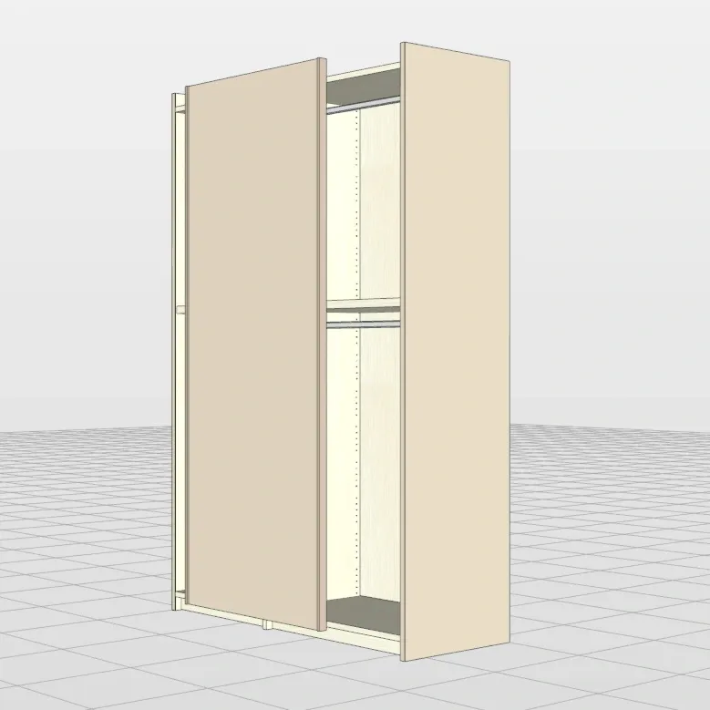 La particolarità dell'armadio sta nelle ante, di dimensioni differenti.