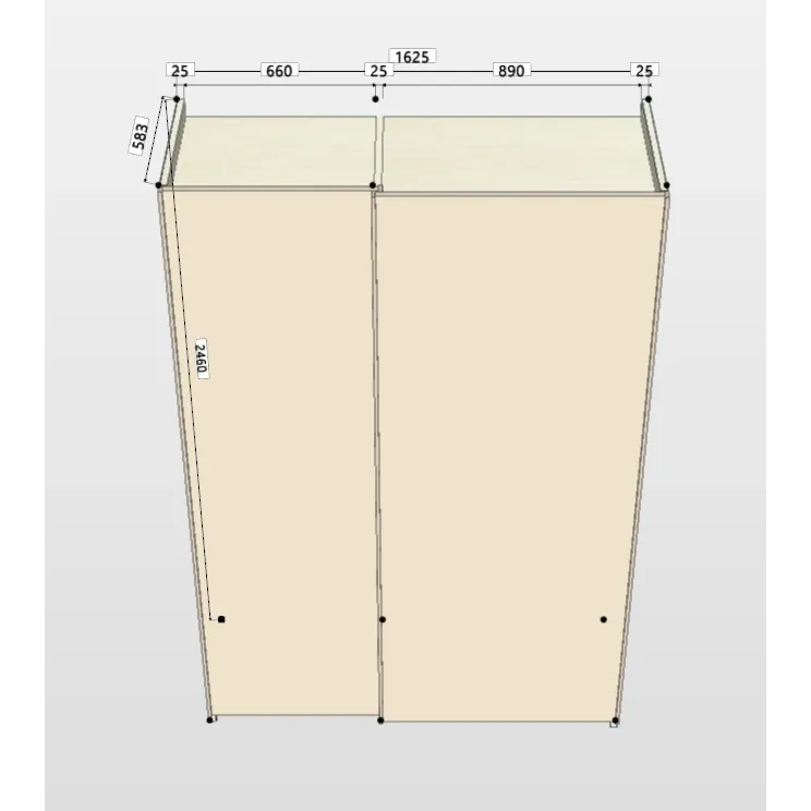 • Dimensioni: 2 moduli, modulo minore L.66 cm- modulo maggiore L.89