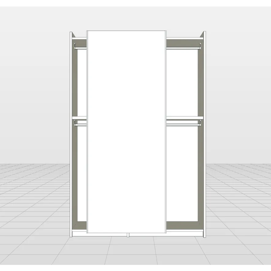 • Allestimento: 1 ripiano spessore 35 mm, 2 tubi appendiabiti colore nichel sezione da 1,5 x 2,2 cm. Interni finitura Rovere sabbia