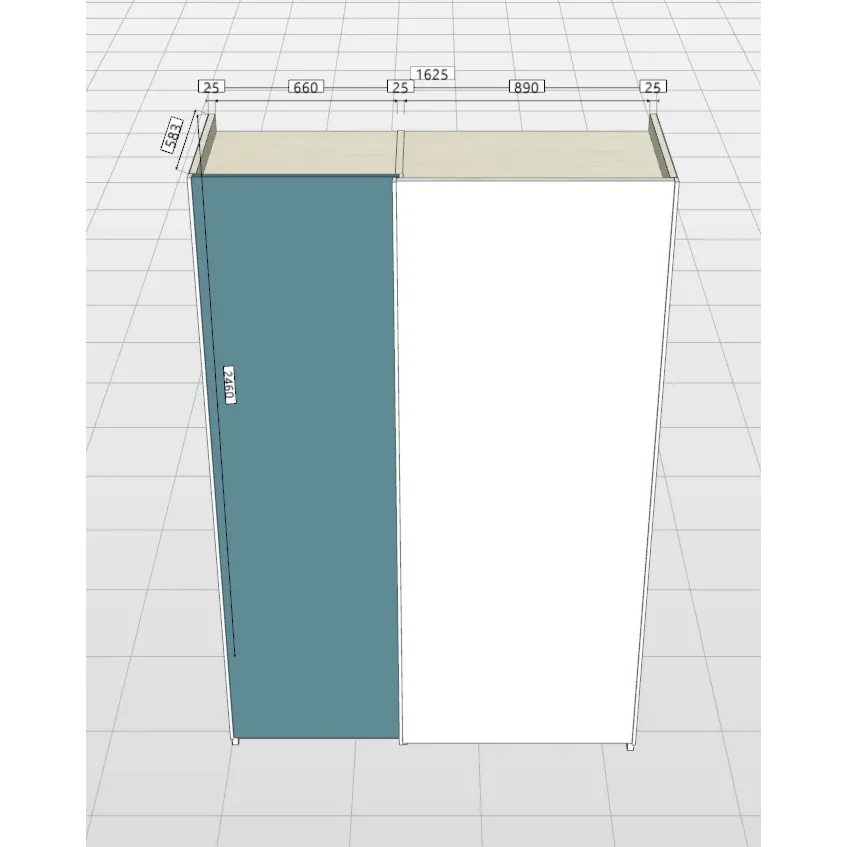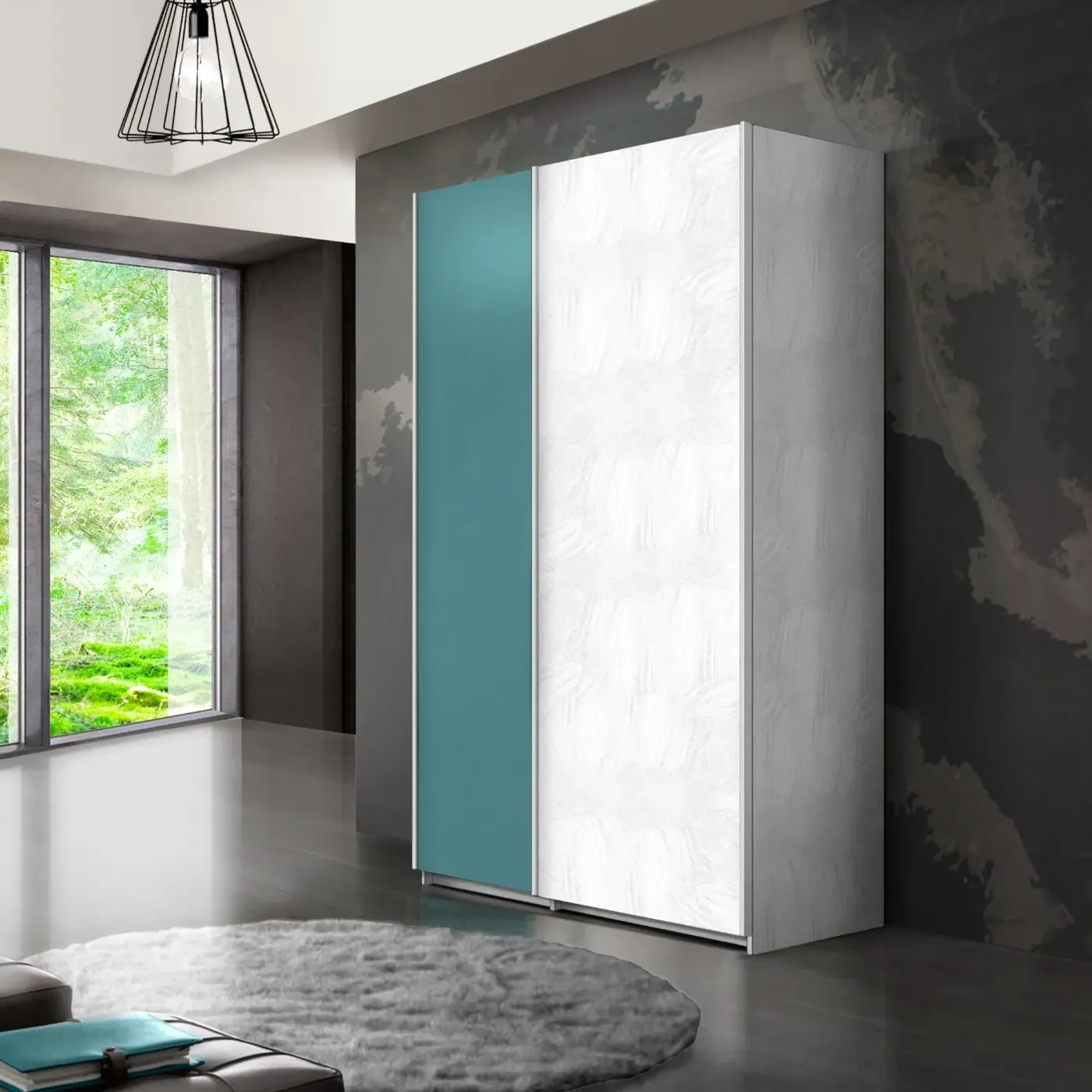 Armadio scorrevole 2 ante, L.163, Snow e Ceruleo laccato