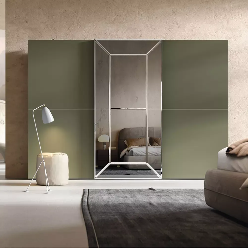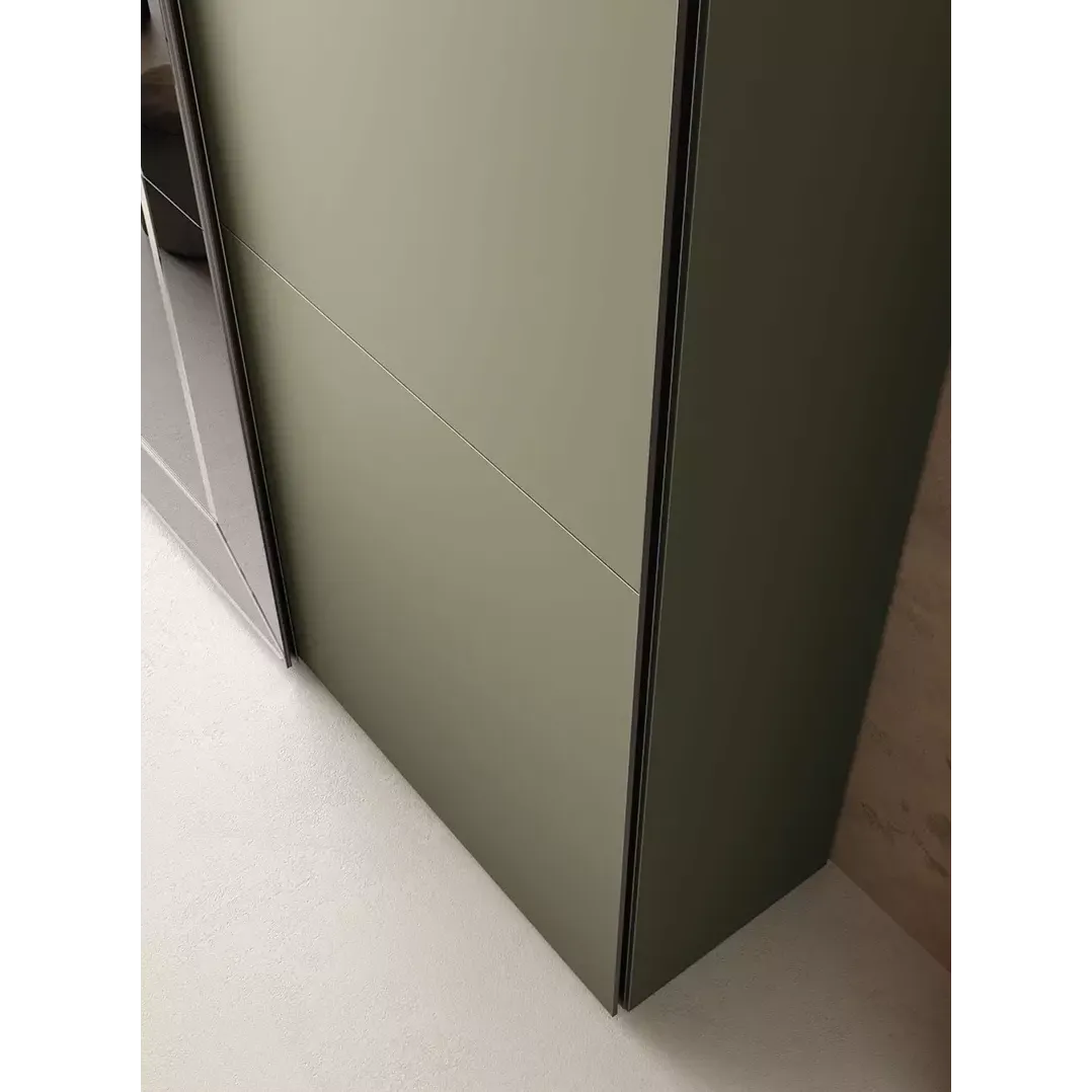 Armadio scorrevole laccato Muschio con specchio fumè, 3 ante