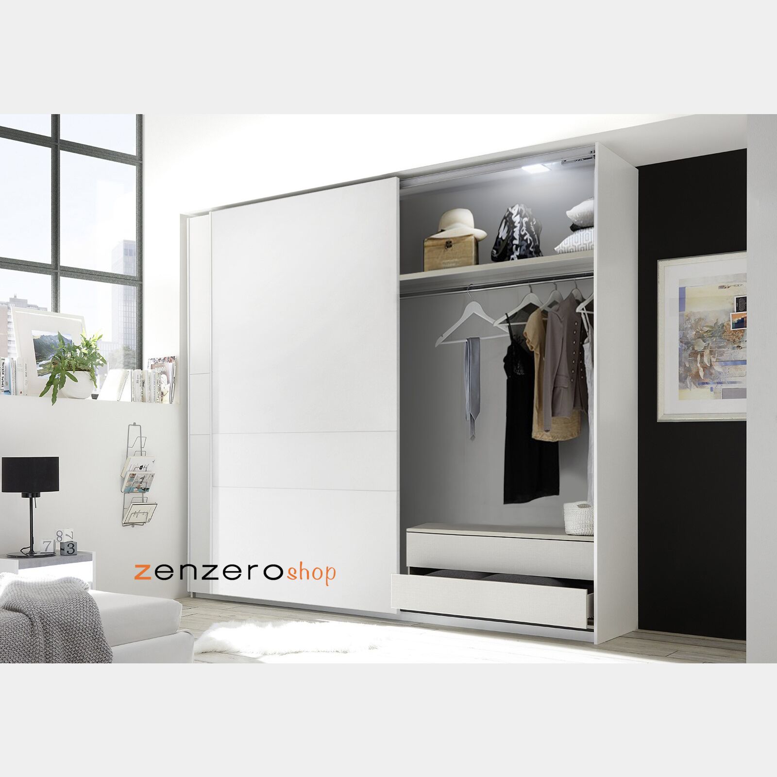 Un mondo di convenienza.Armadio scorrevole tutto bianco opaco con guide in metallo. Lasciatevi ispirare da una collezione pensata per interpretare i desideri di chi non rinuncia allo stile ed alla qualità nell’arredare, il nostro armadio scorrevole ha un prezzo scontatissimo ed èuna esclusiva Zenzero Shop per l'Italia.