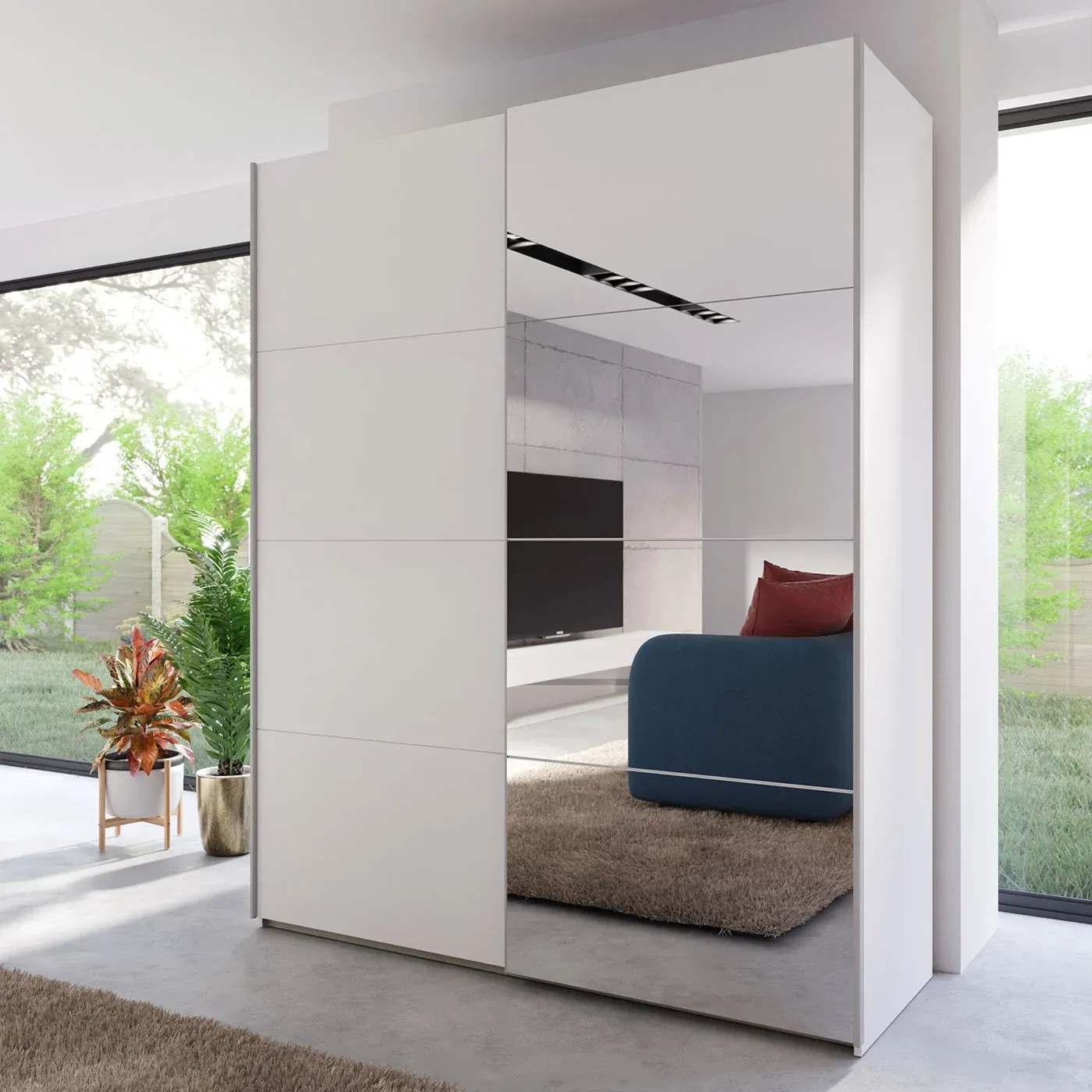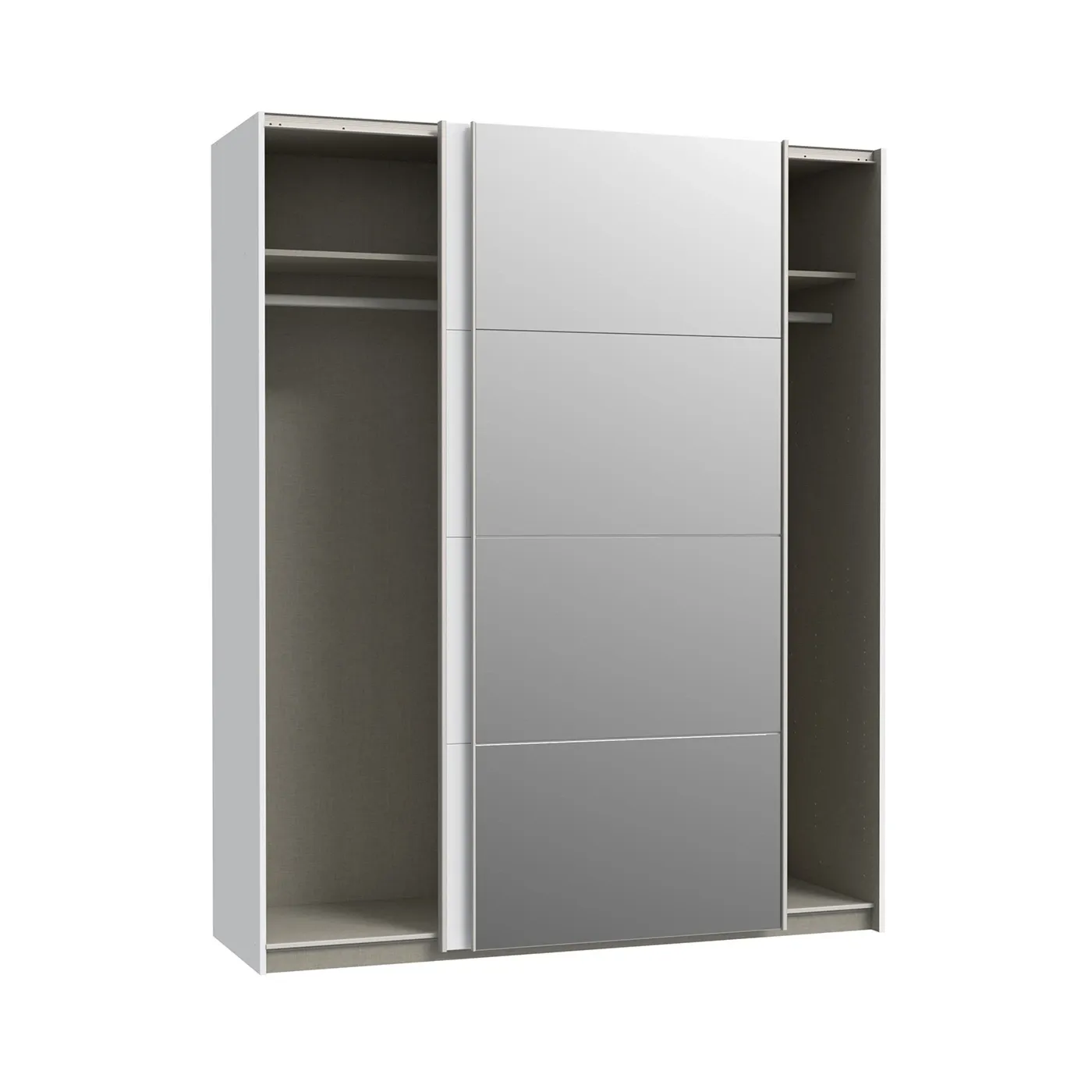 Armadio scorrevole 2 ante con specchio, 171x62x211 h cm, Bianco Opaco