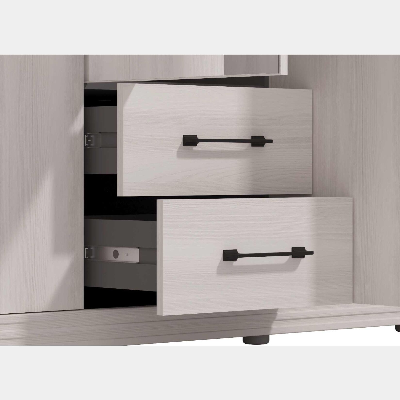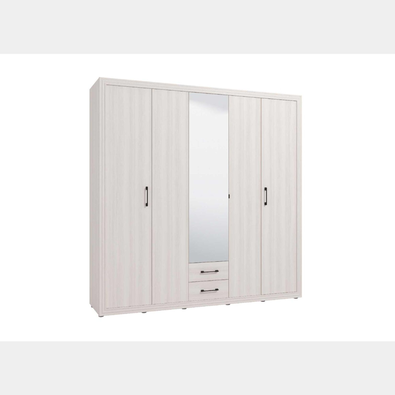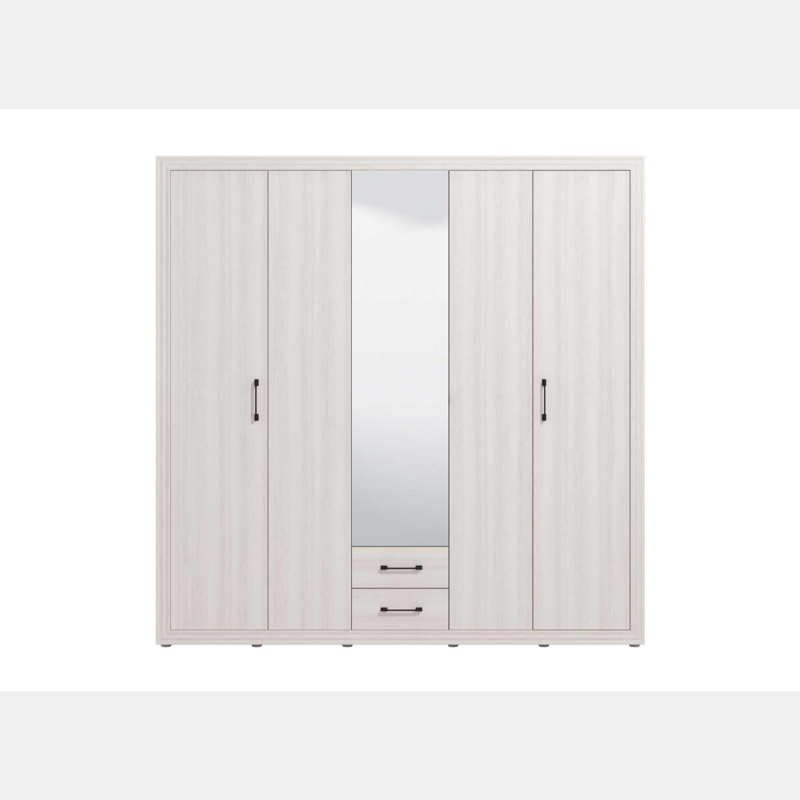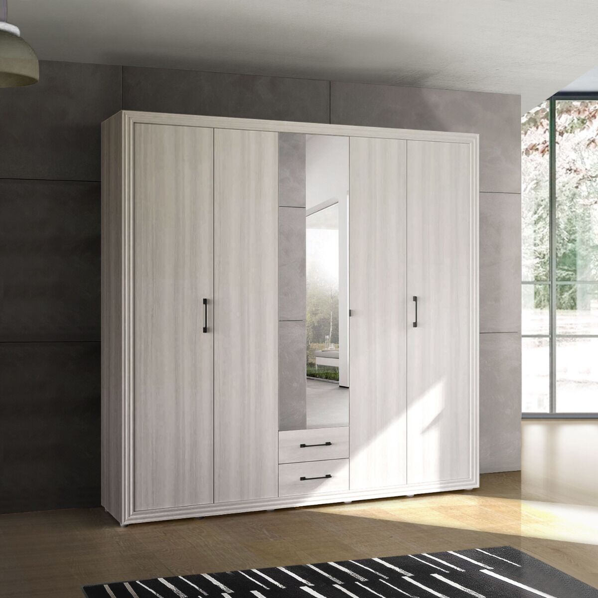 Armadio stile contemporaneo, 5 ante battenti e 2 cassetti, colore Bianco frassino