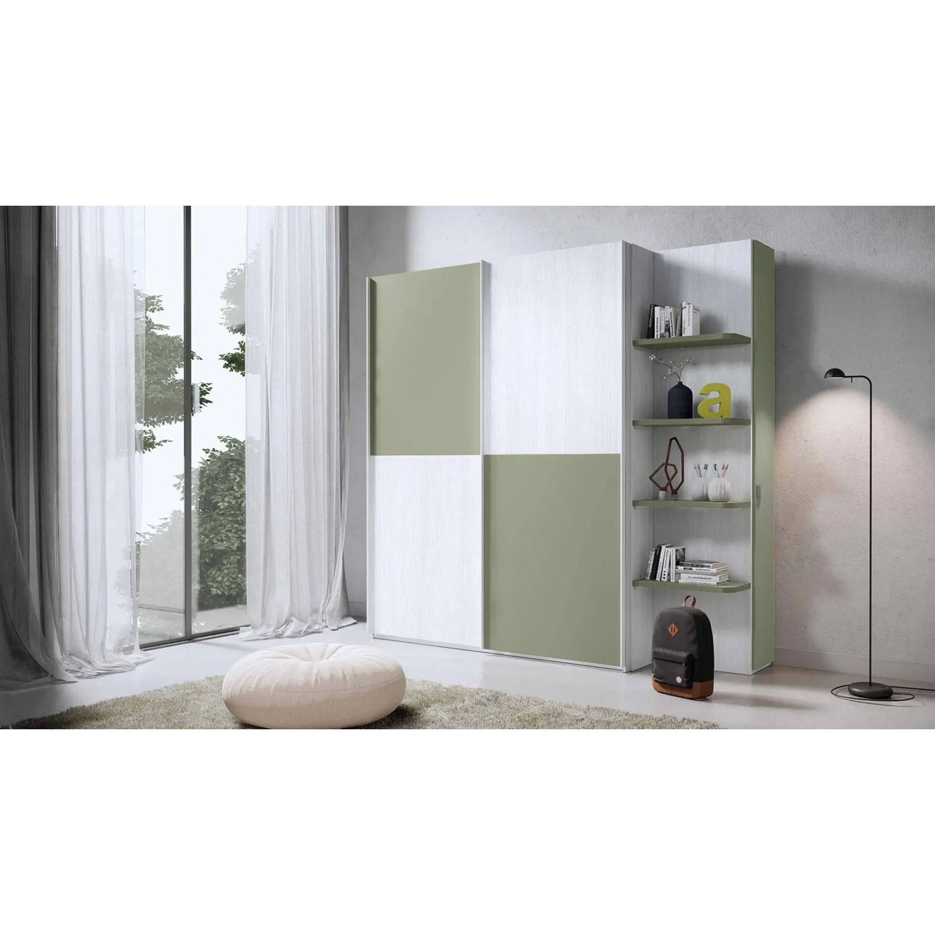 Armadio Salvia e Bianco frassino per camerette, due ante scorrevoli