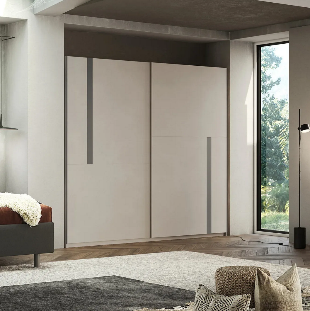 Sia che si tratti di armadi battenti o scorrevoli, optare per la finitura Cashmere può trasformare qualsiasi camera da letto in un rifugio di eleganza e comfort.