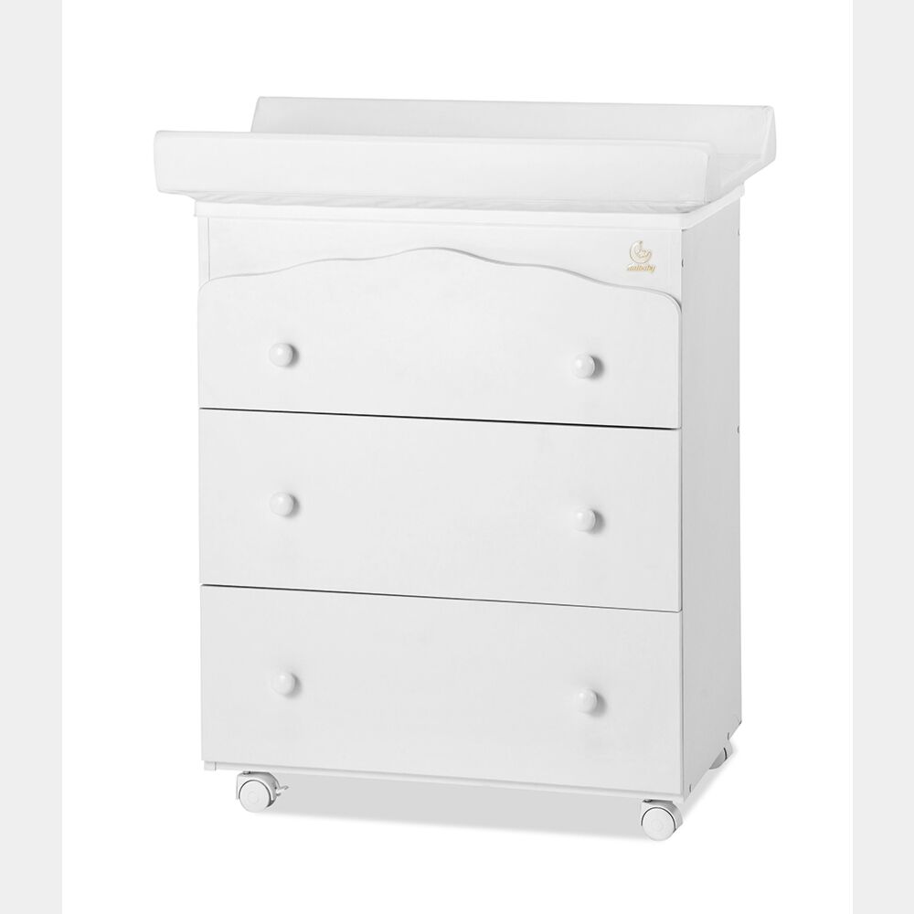 Il piano cambio è costituito da un morbido materassino con tasca di sicurezza, rivestito in tessuto plastico in PVC atossico e senza ftalati, lavabile e igienico. Le due sponde alte assicurano la massima sicurezza per il neonato.