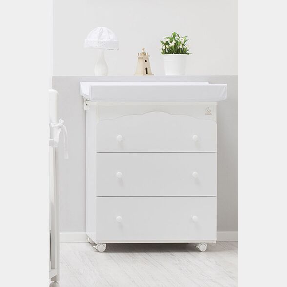 Il sistema Easy dress consente, con un semplice gesto, di ruotare il piano fasciatoio dalla posizione orizzontale a perpendicolare "fronte mamma", garantendo così una maggiore praticità d'azione. L'ingombro del piano rotante è limitato all'ingombro stesso della cassettiera, in modo da non dover richiedere ulteriori spazi di manovra laterali.
