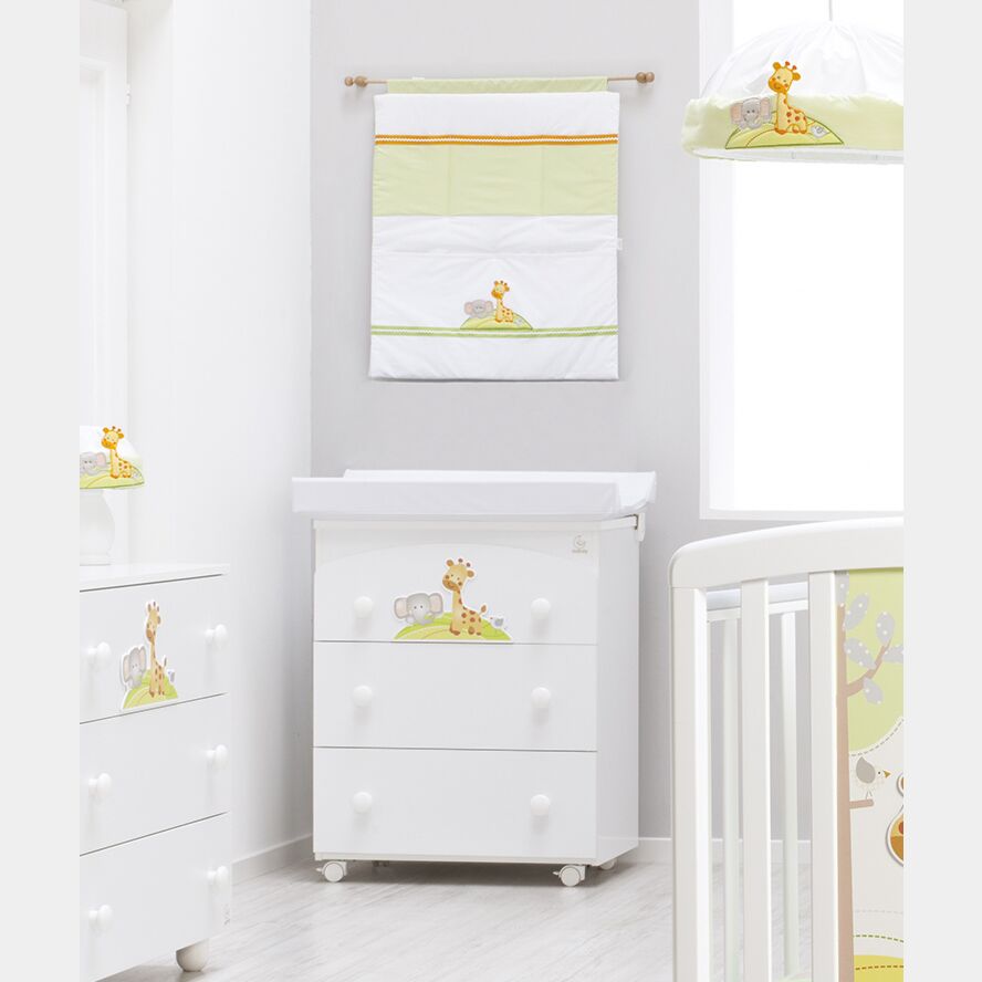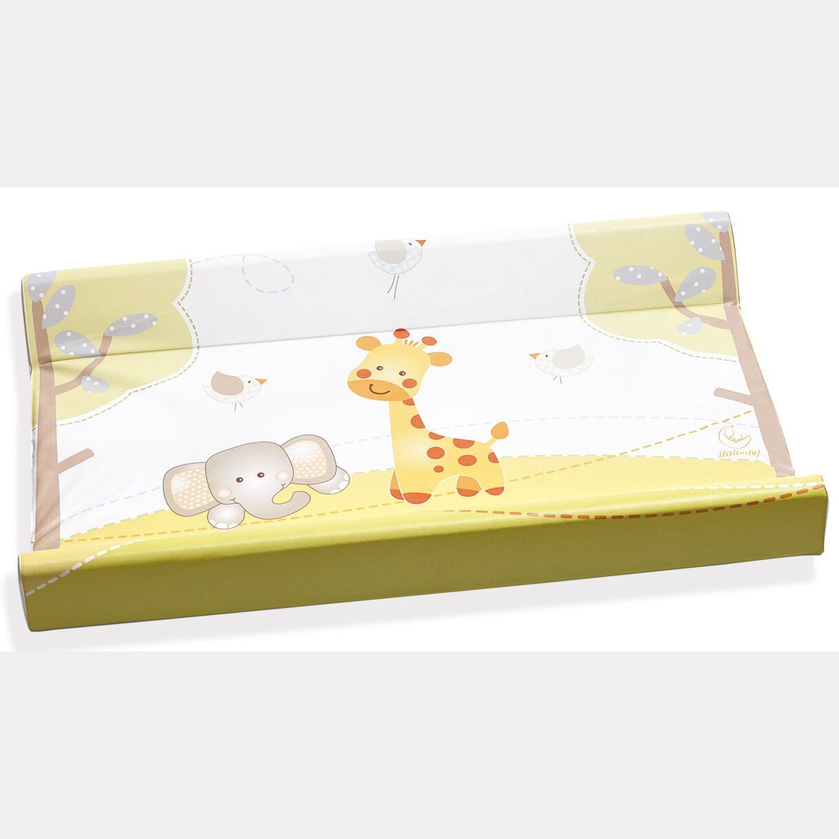 Il piano cambio è costituito da un morbido materassino con tasca di sicurezza, rivestito in tessuto plastico in PVC atossico e senza ftalati, lavabile e igienico. Le due sponde alte assicurano la massima sicurezza per il neonato. E' possibile richiedere tramite apposito configuratiore il fasciatoio in PVC con sponde 2 lati bianco in fantasia (L.81 H.9 P.49 cm).