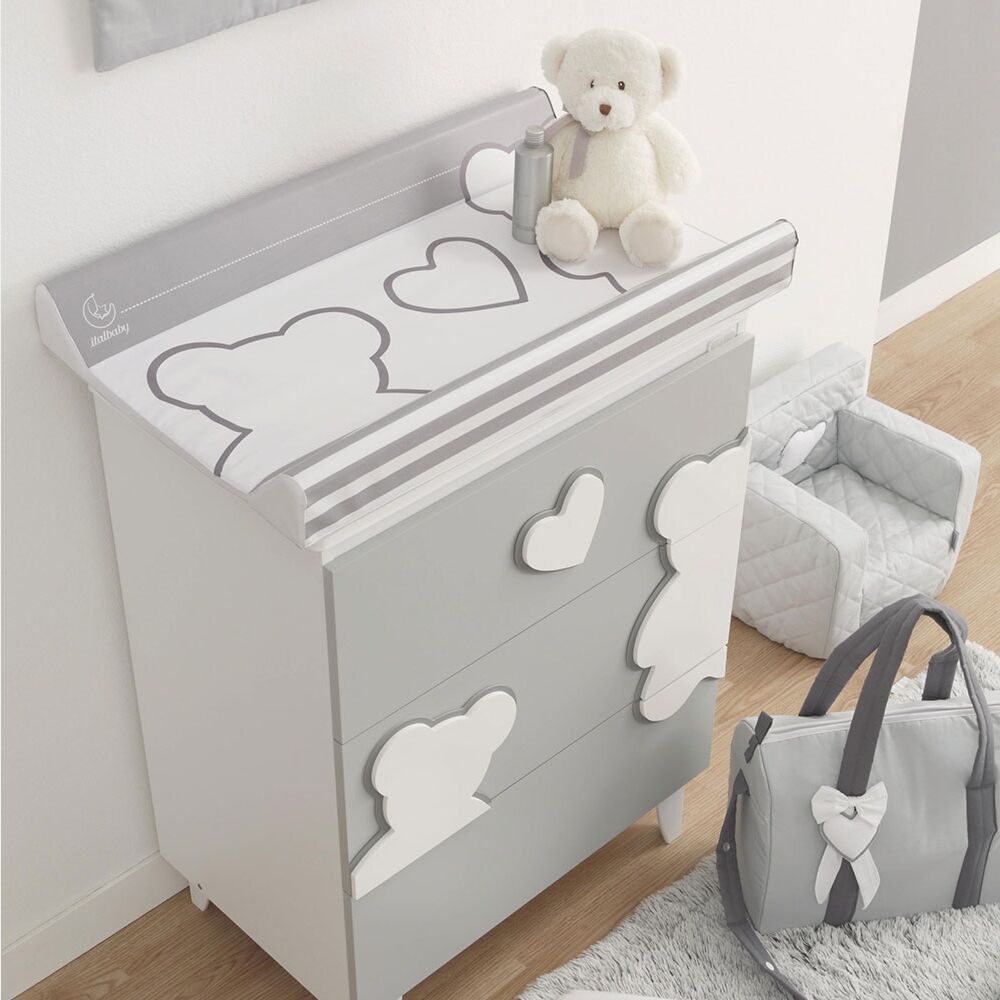 Al bagnetto è possibile aggiungere il fasciatoio in PVC con stampa decorata, bianco e grigio.