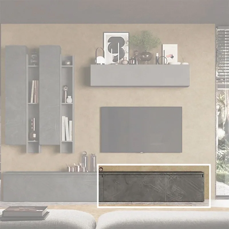 La finitura proposta Lava, può essere sostituita con le tinte disponibili a campionario, per personalizzare al meglio il mobile porta tv, adattandolo così al proprio soggiorno.